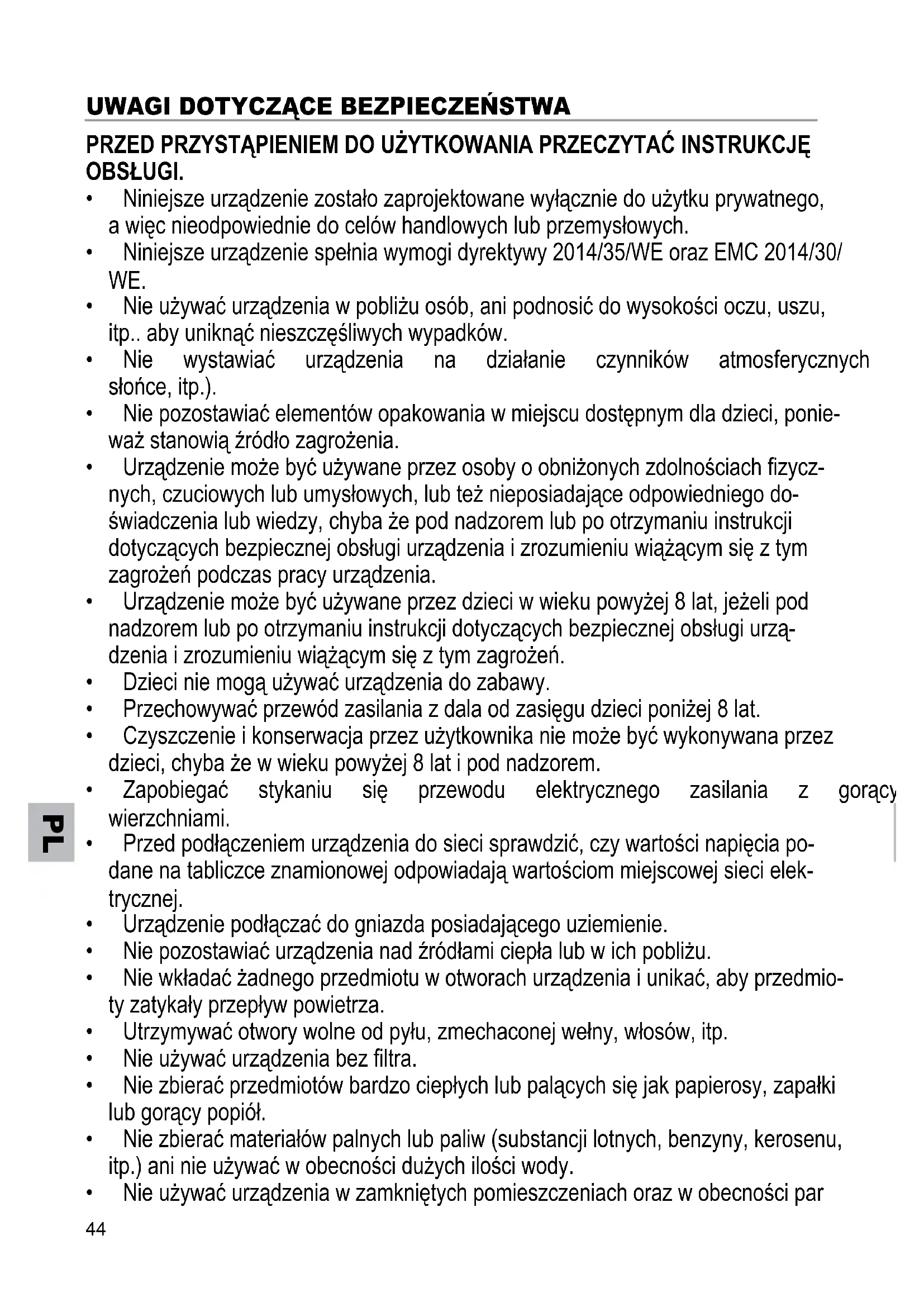 - Urządzeniemożebyćużywaneprzezosobyoobniżonychzdolnościachzycz- nych,czuciowychlubumysłowych,lubteżnieposiadająceodpowiedniegodo- świadczenialubwiedzy,chybażepodnadzoremlubpootrzymaniuinstrukcji dotyczącychbezpiecznejobsługiurządzeniaizrozumieniuwiążącymsięztym zagrożeńpodczaspracyurządzenia.