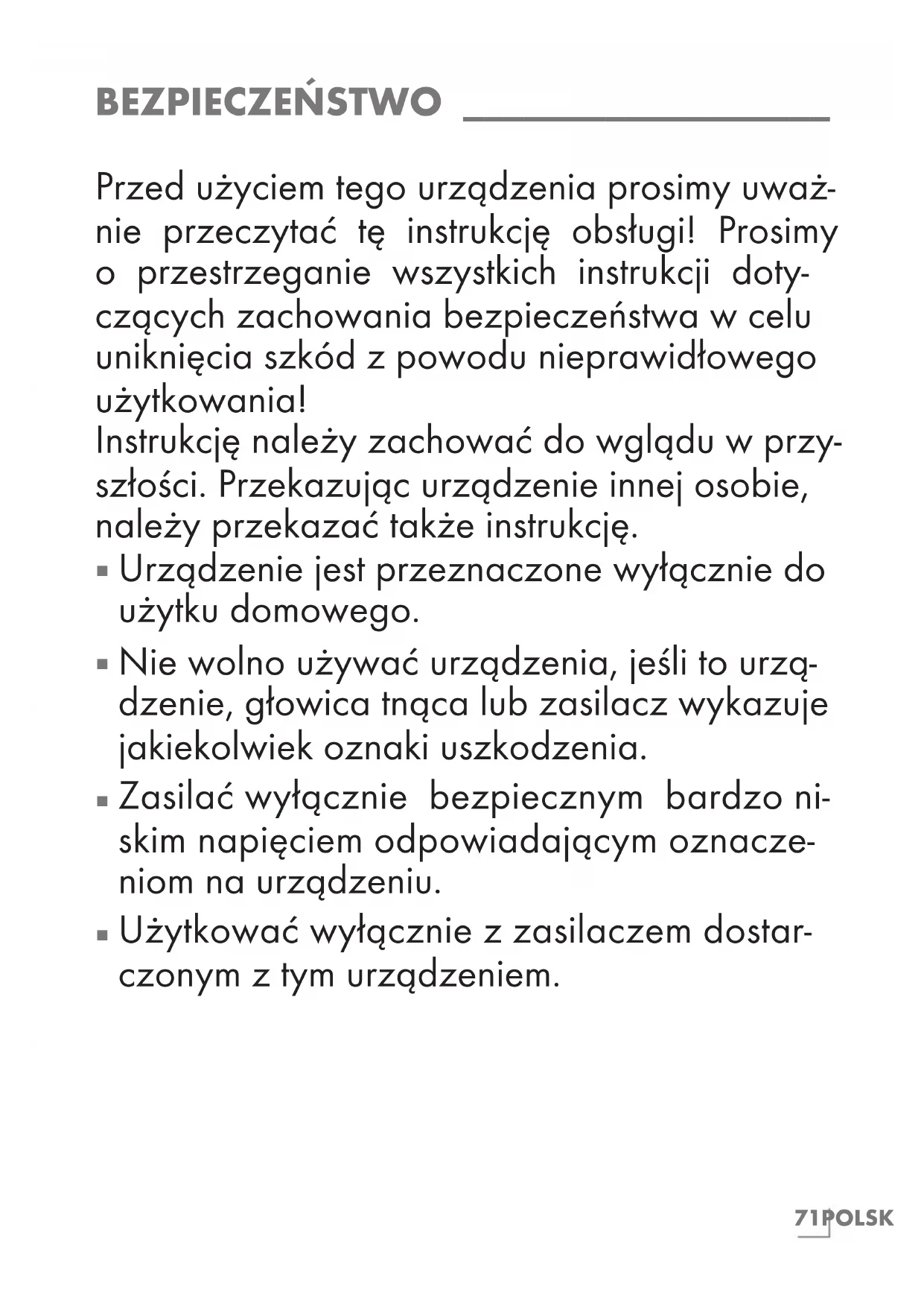 Urządzenie jest przeznaczone wyłącznie do użytku domowego.