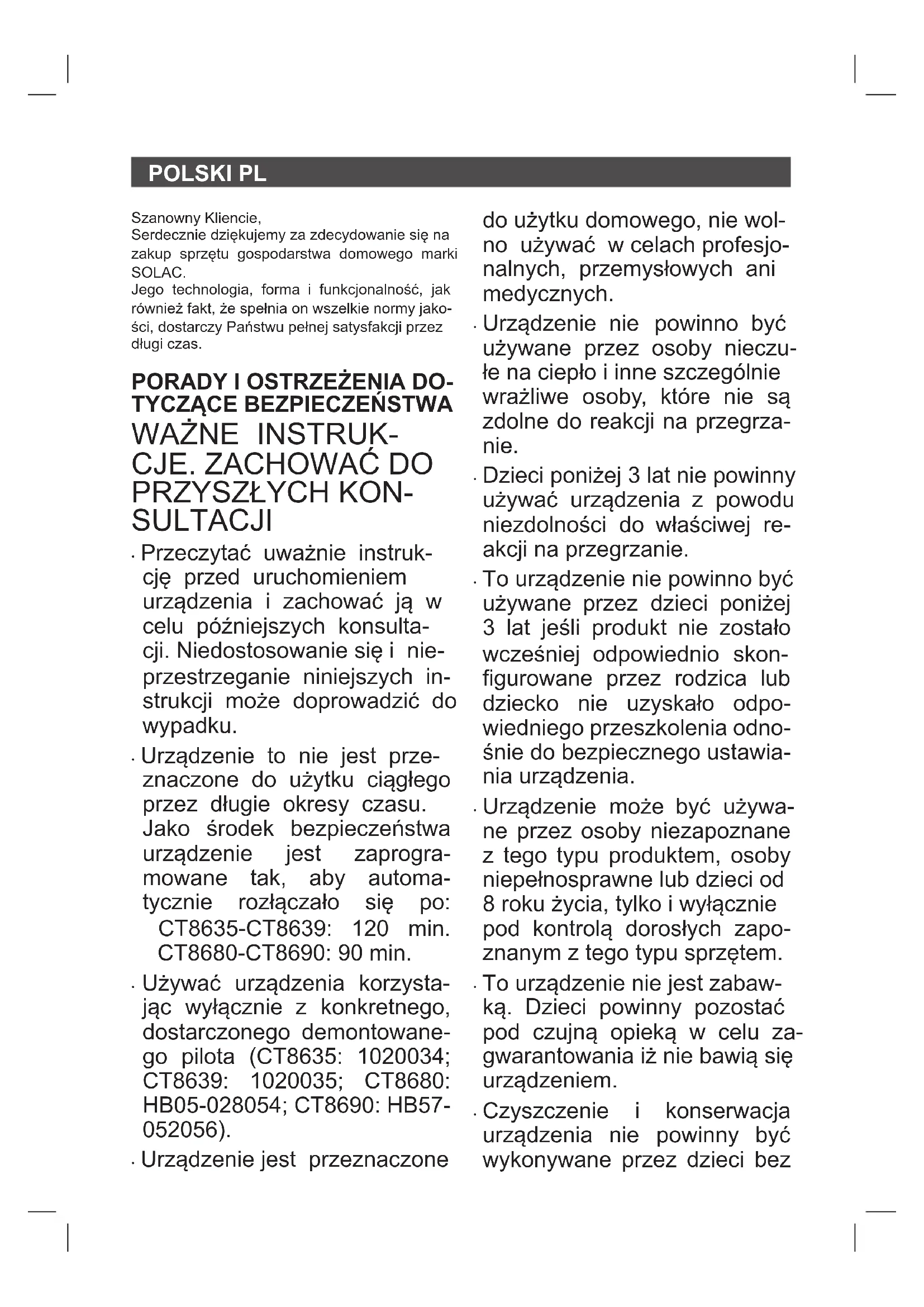 INSTRUKCJA OBSŁUGI CT8639 SOLAC
