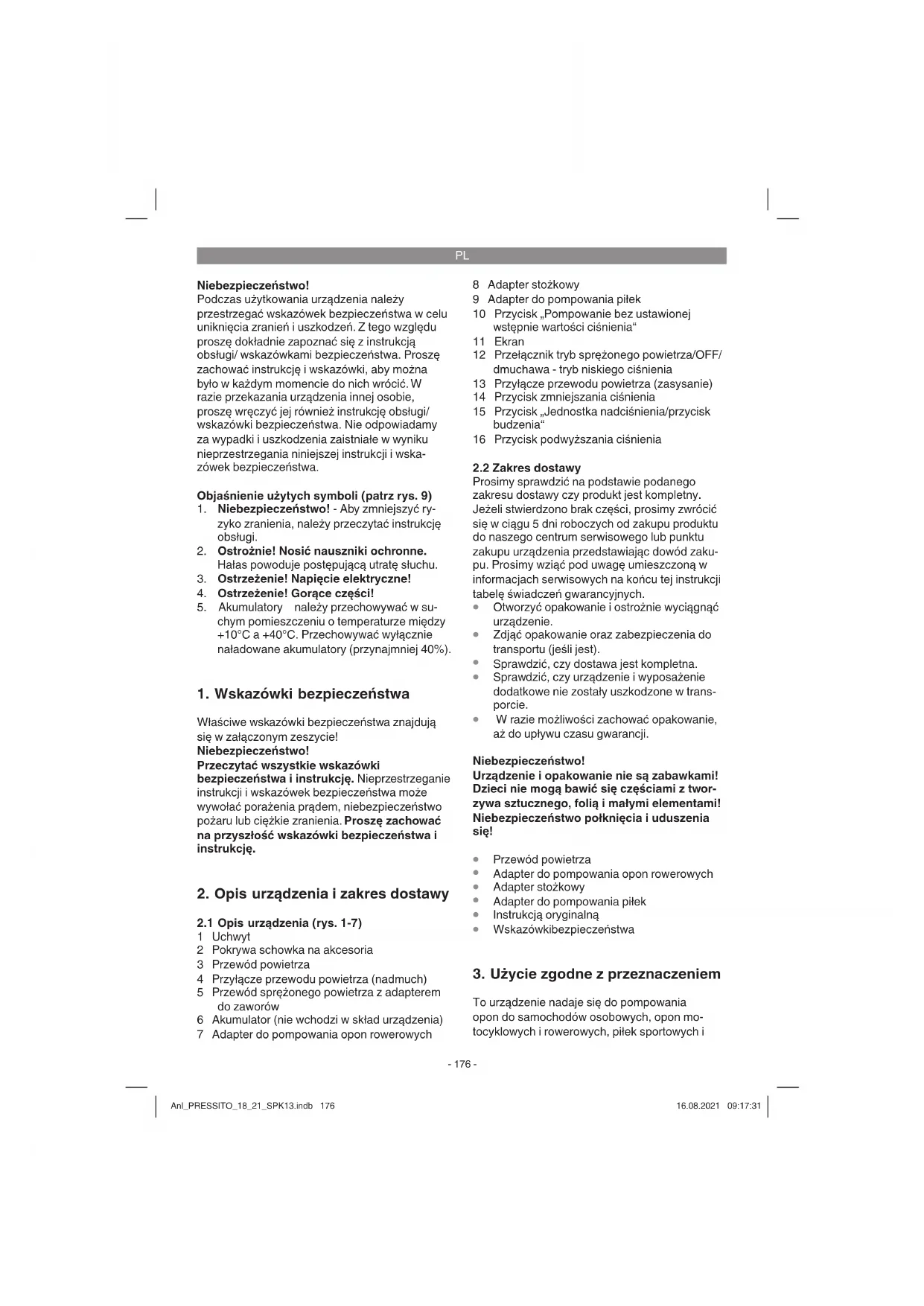 Urzadzenie uzywac tylko zgodnie z loro przyeznaczeniem. Kaźde uźycie, odbiegajce od opisanego w ninejszej instrukcj jest niedzodne z przyznaczenium urzadzenia. Za powstale wDyniku niewlasciwogo uzytkowania szkody lub zranienia odpowiedzialnosc ponosi uzytkownik/ wlasciel, a nie producent.