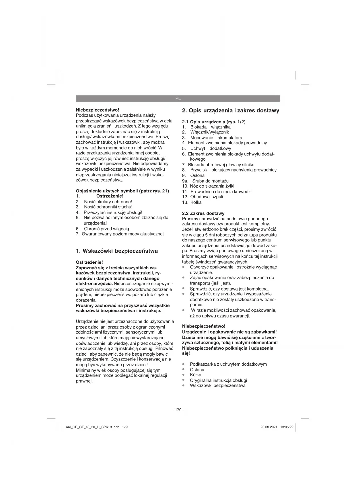 czy styk na kontaktach ładowarki jest prawidłowy. Anl_GE_CT_18_30_Li_SPK13.indb 181Anl_GE_CT_18_30_Li_SPK13.indb 181 23.08.2021 13:05:2223.08.2021 13:05:22PL