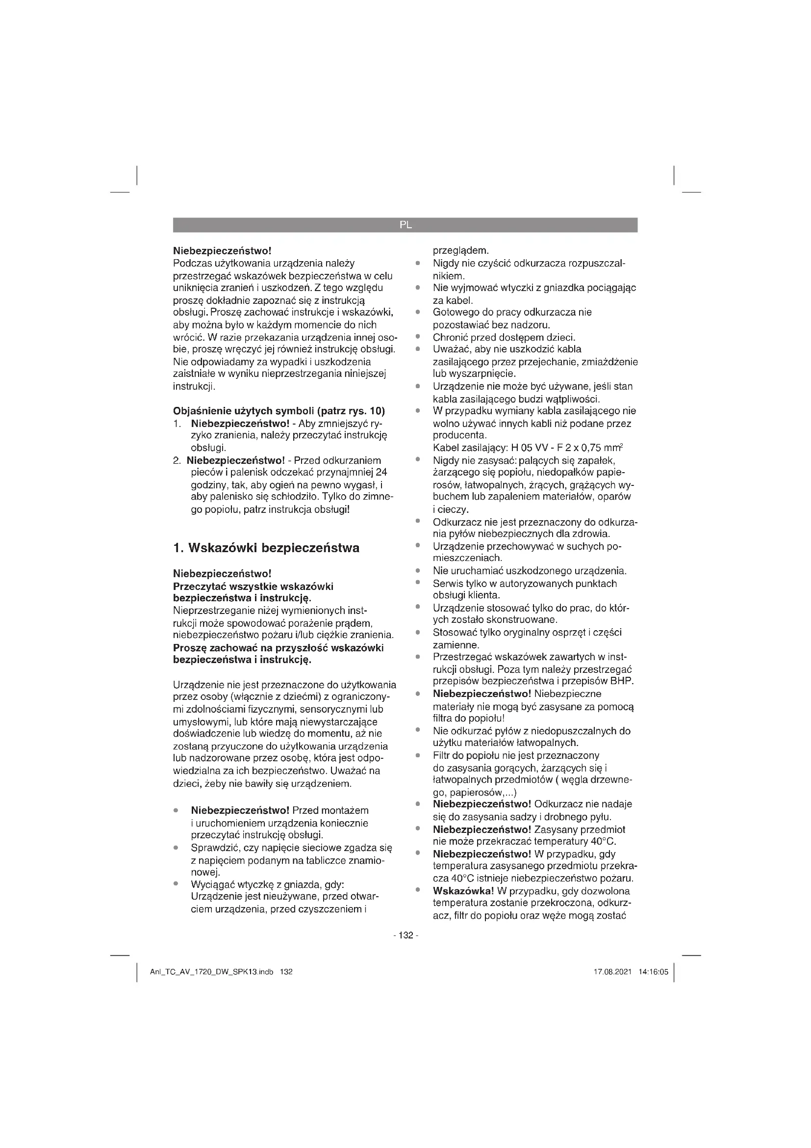 Wskazówka! W przypadku, gdy dozwolona temperatura zostanie przekroczona, odkurz- acz, filtr do popiołu oraz węże mogą zostać Anl_TC_AV_1720_DW_SPK13.indb 132Anl_TC_AV_1720_DW_SPK13.indb 132 17.08.2021 14:16:0517.08.2021 14:16:05PL