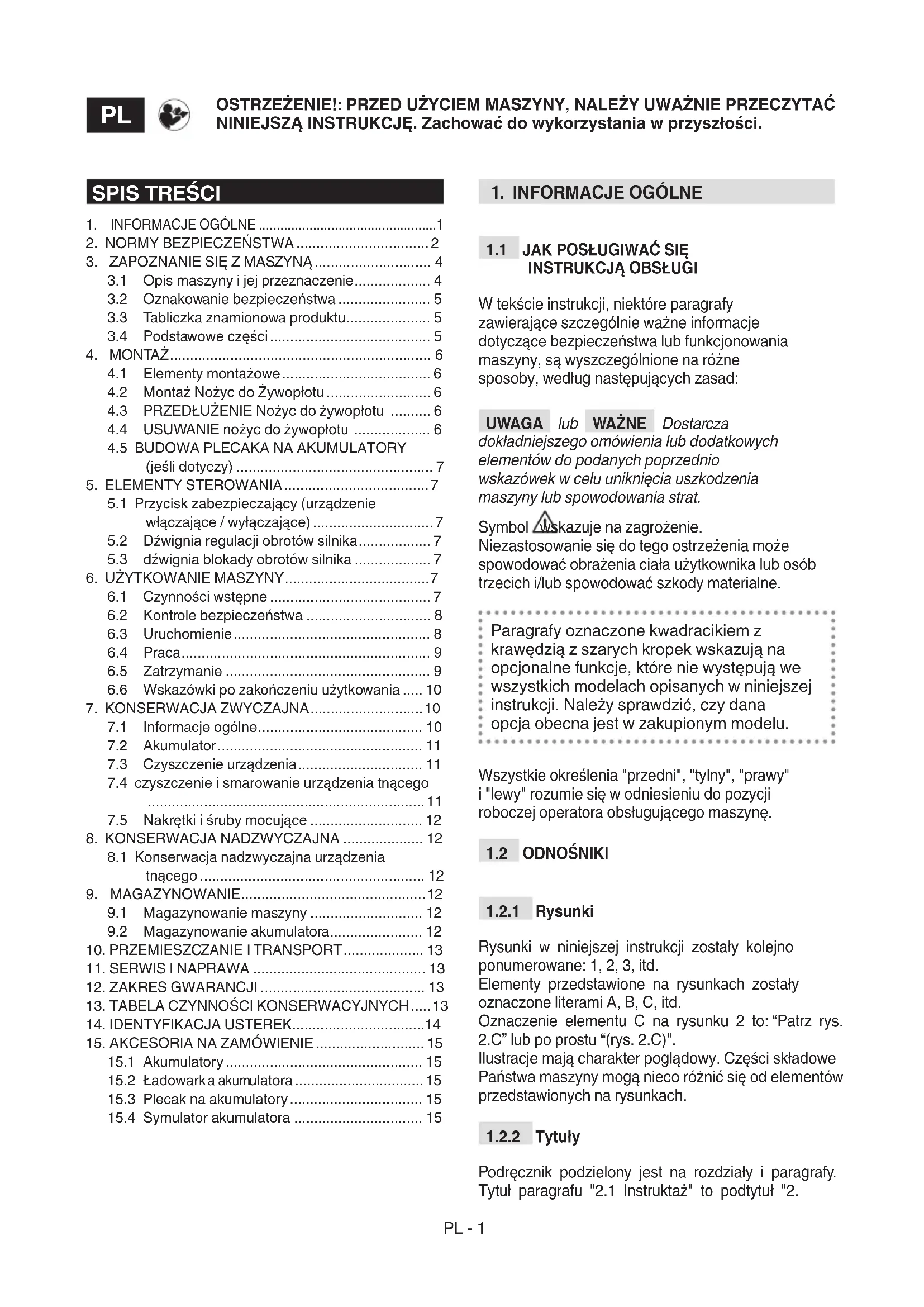 OSTRZEŻENIE: przed użyciem maszyny, należy uważnie przeczytać niniejszą instrukcję.