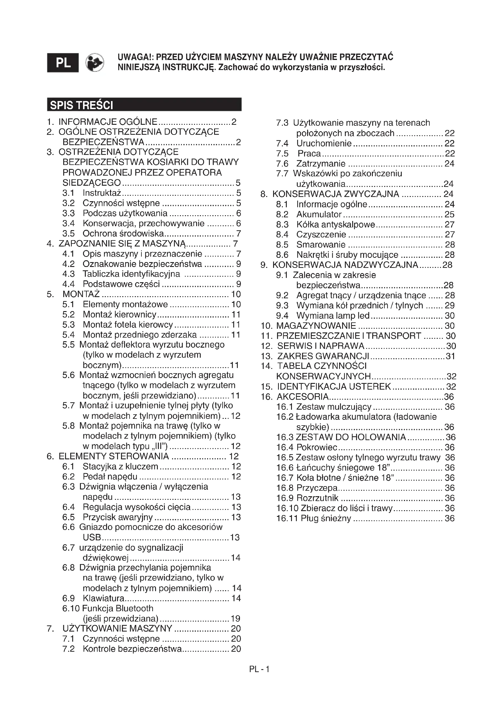 na trawę (jeśli przewidziano, tylko w modelach z tylnym pojemnikiem) ...... 14