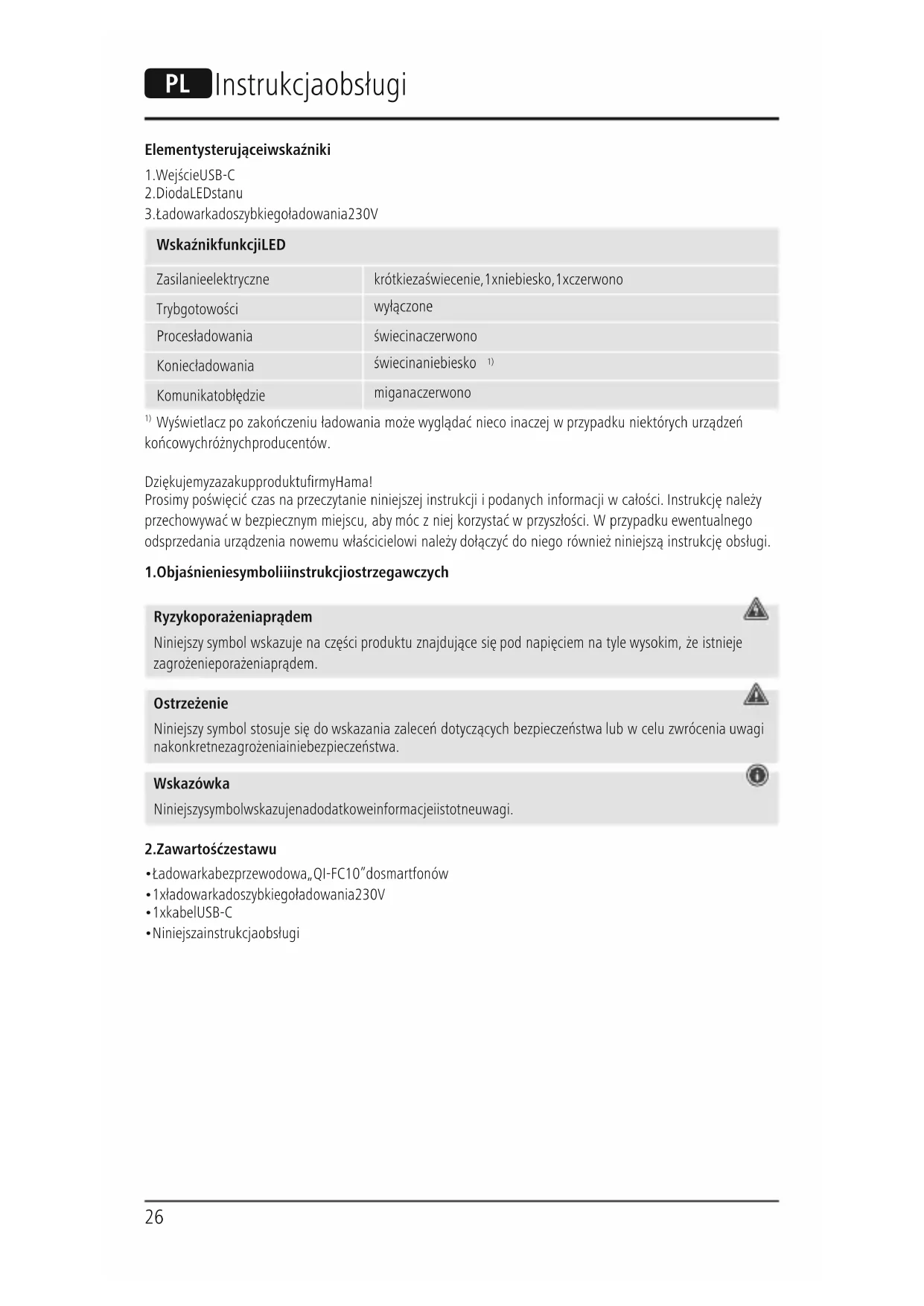 Wyświetlacz po zakończeniu ładowania może wyglądać nieco inaczej w przypadku niektórych urządzeń końcowych różnych producentów. Dziękujemy za zakup produktu rmy Hama! Prosimy poświęcić czas na przeczytanie niniejszej instrukcji i podanych informacji w całości. Instrukcję należy przechowywać w bezpiecznym miejscu, aby móc z niej korzystać w przyszłości. W przypadku ewentualnego odsprzedania urządzenia nowemu właścicielowi należy dołączyć do niego również niniejszą instrukcję obsługi.