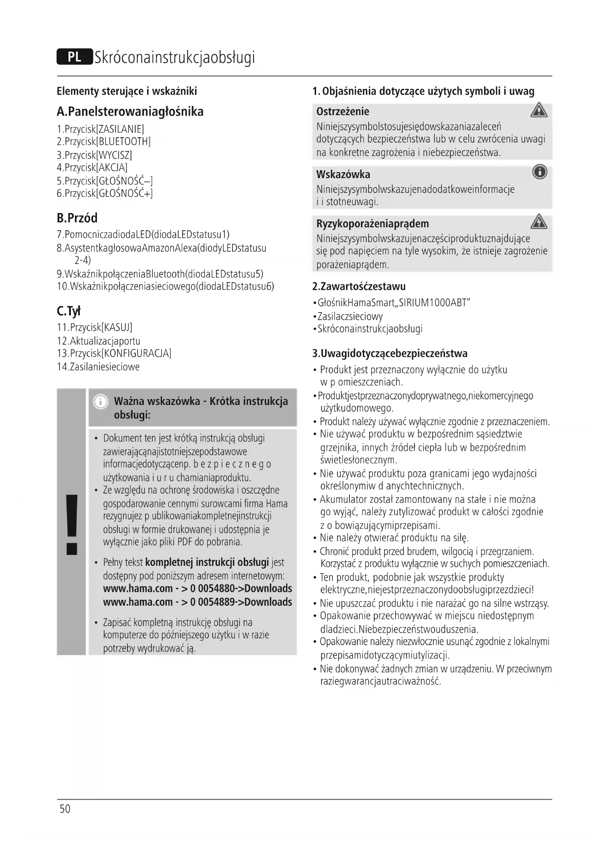 - Pełny tekst kompletnej instrukcjiobsługi jest dostępnypod poniższym adreseminternetowym: www.hama.com->00054880 -> Downloads www.hama.com->00054889 -> Downloads
