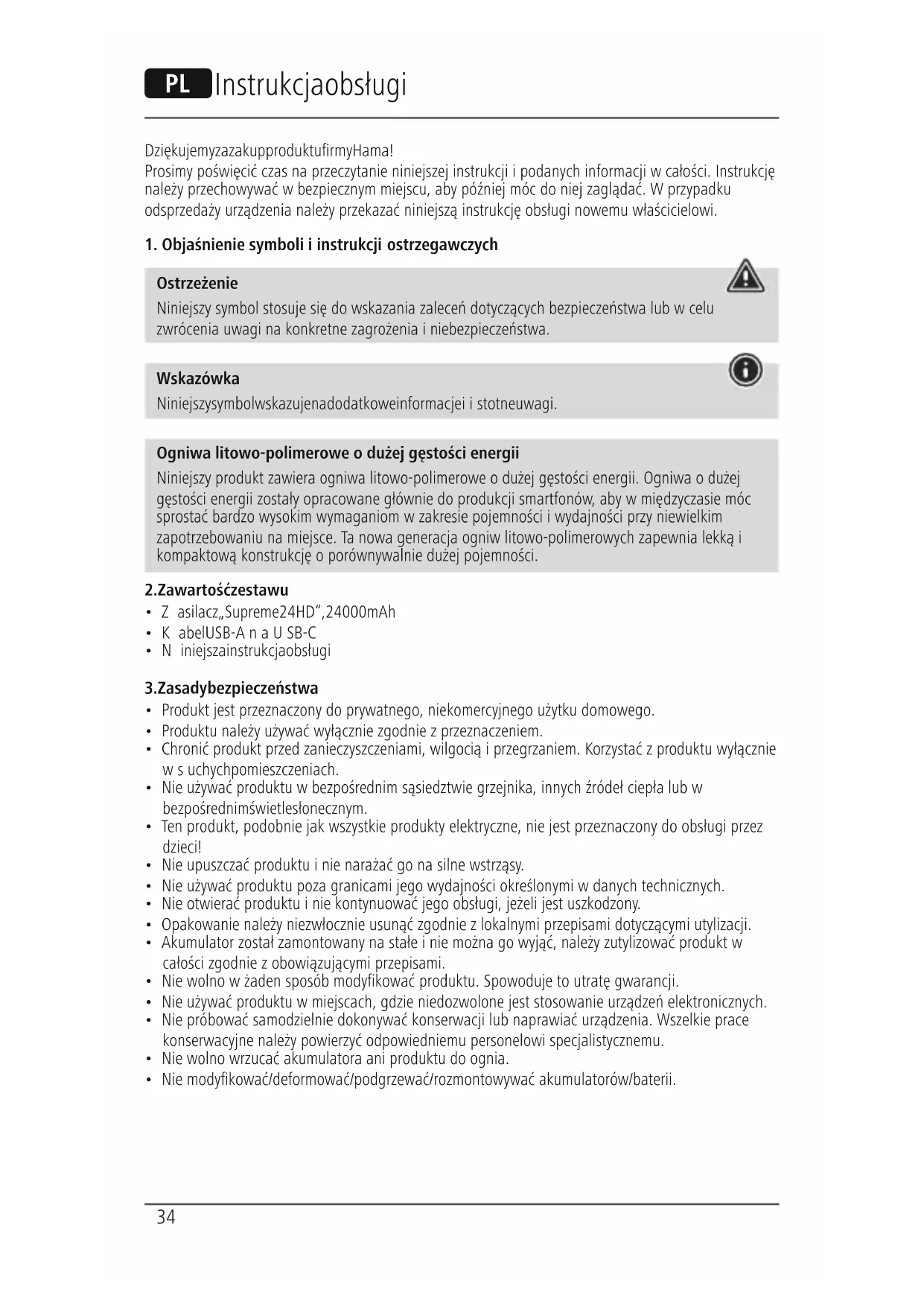 Supreme 24HD 00187293 - Powerbank HAMA - Bezpłatna instrukcja obsługi