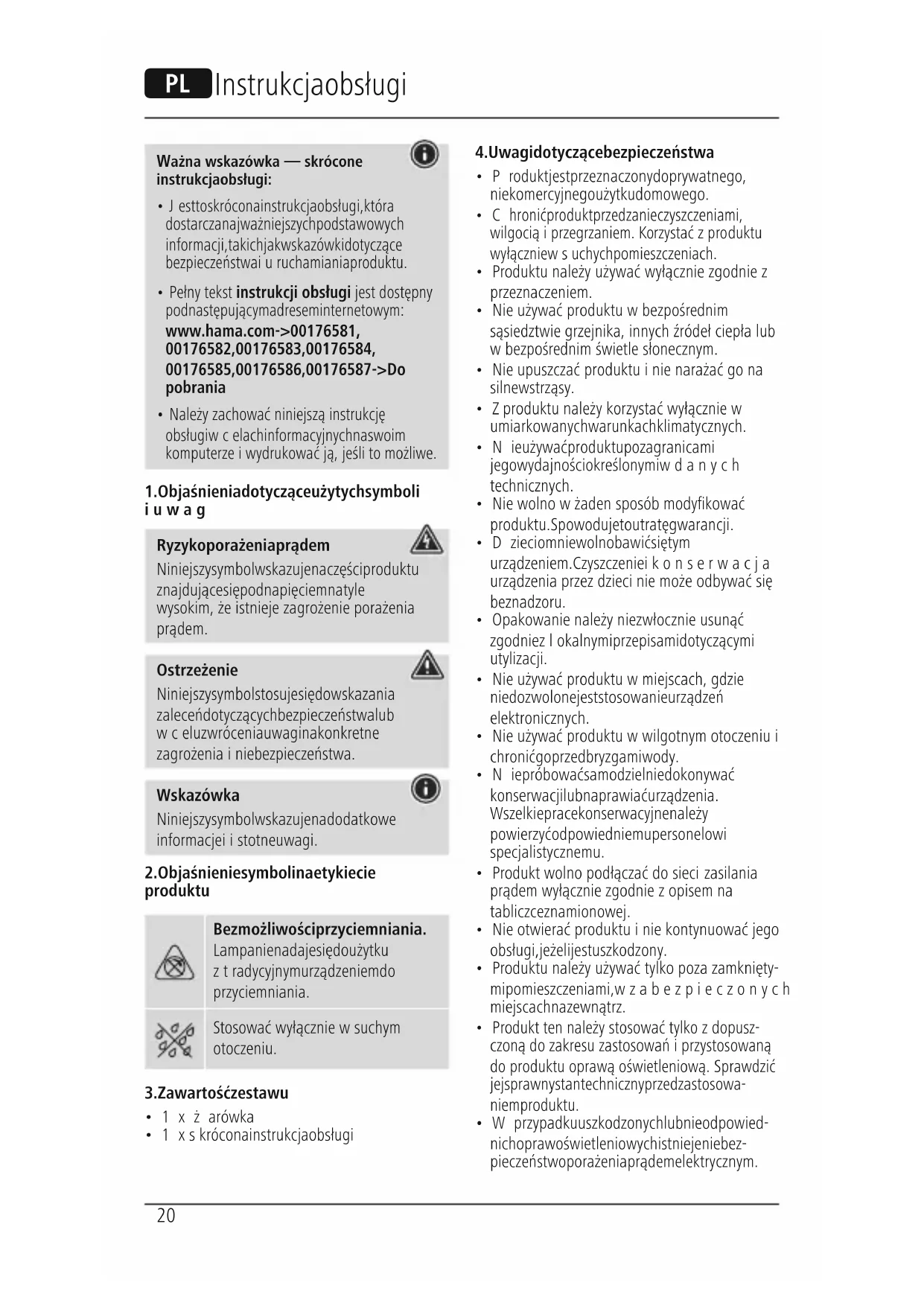 - Pełny tekst instrukcji obsługi jest dostępny pod następującym adresem internetowym: www.hama.com -> 00176581, 00176582, 00176583, 00176584, 00176585, 00176586, 00176587 -> Do pobrania