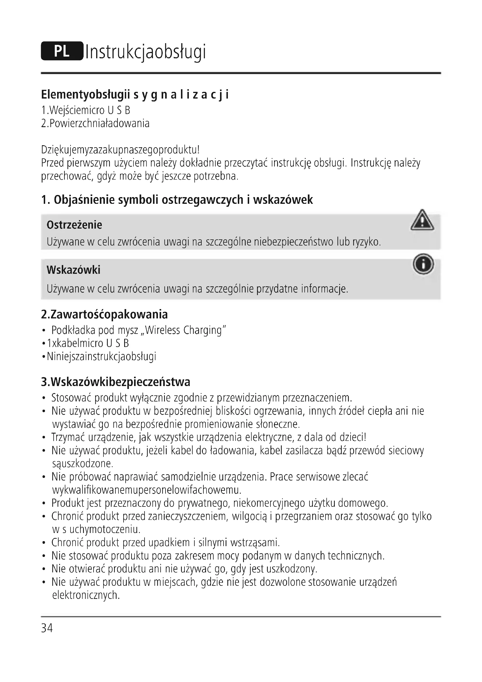 1. Objaśnienie symboli ostrzegawczych iwskazówek