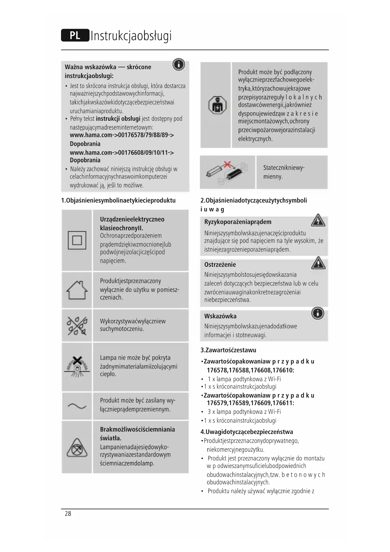 - Pełny tekst instrukcji obsługi jest dostępny pod następującym adresem internetowym: www.hama.com -> 00176578/79/88/89 -> Do pobrania www.hama.com -> 00176608/09/10/11 -> Do pobrania