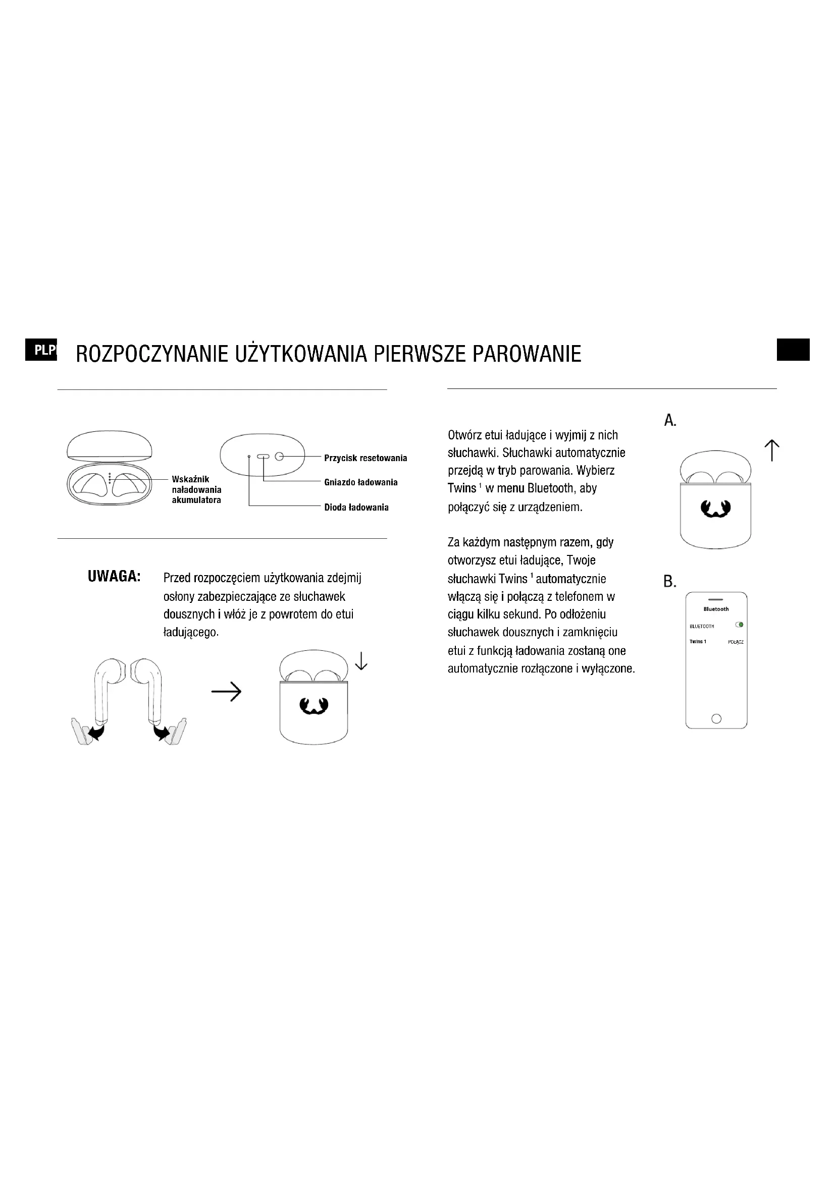 w menu Bluetooth, aby połączyć się z urządzeniem. Za każdym następnym razem, gdy otworzysz etui ładujące, Twoje słuchawki Twins