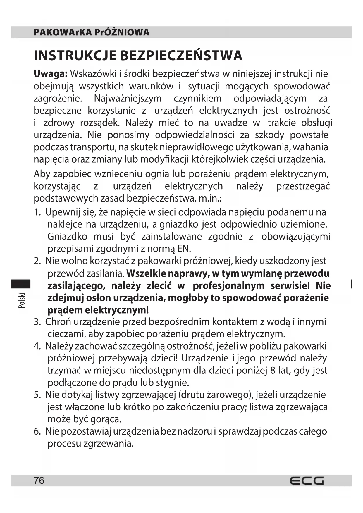 2. Nie wolno korzystać zpakowarki próżniowej, kiedy uszkodzony jest
