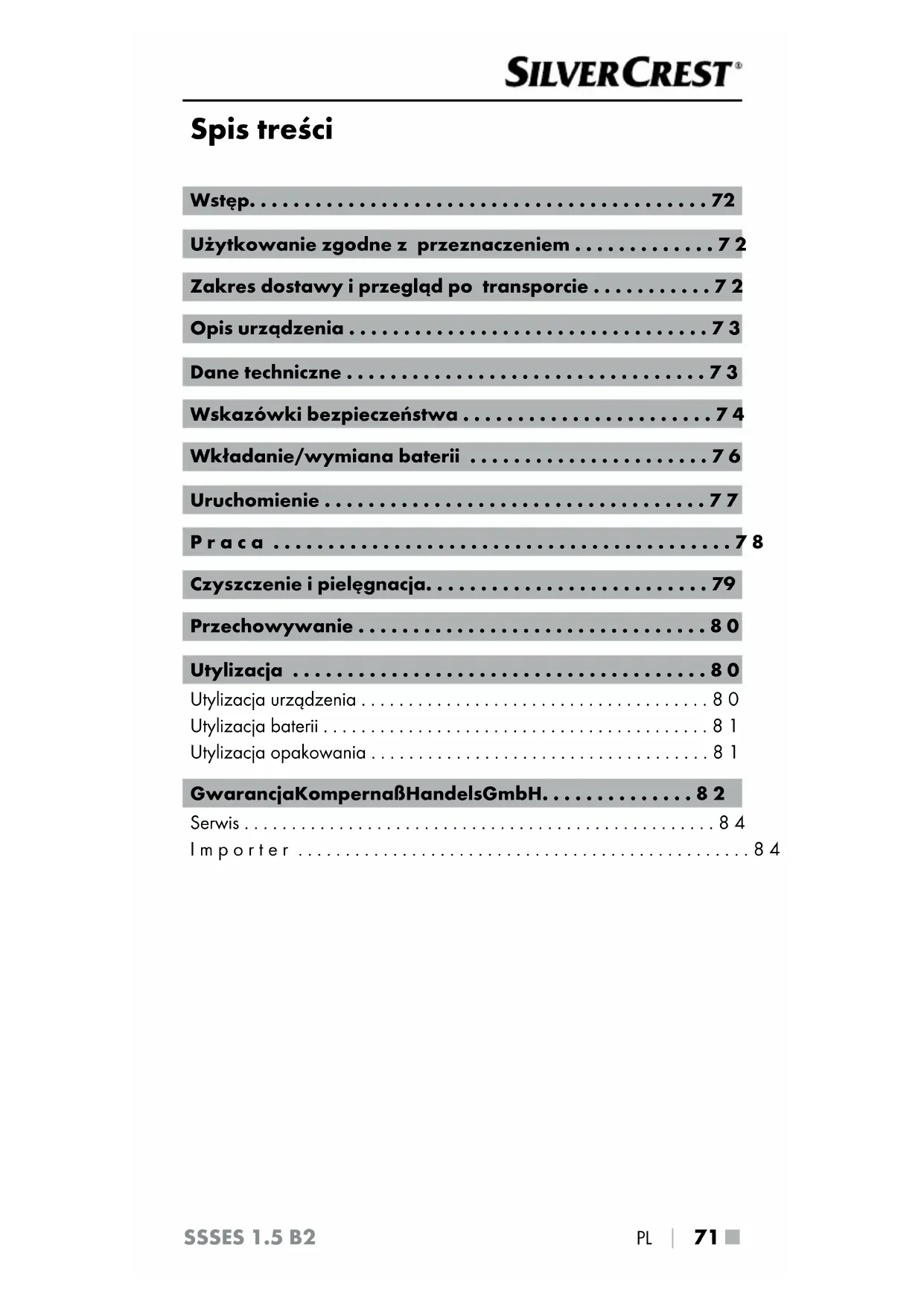 INSTRUKCJA OBSŁUGI SSSES 1.5 B2 SILVERCREST