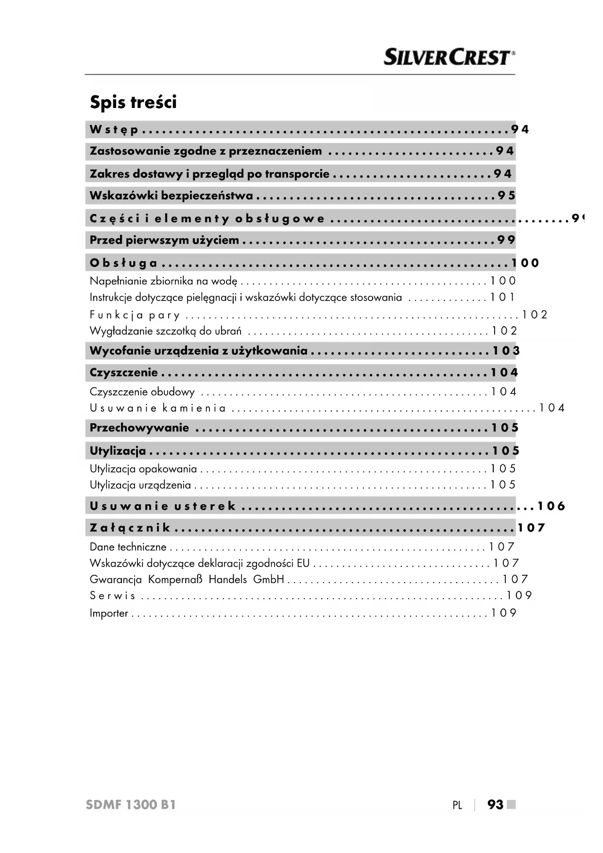 - 93 ■ SDMF 1300 B1 Spis treści Wstęp p. 94