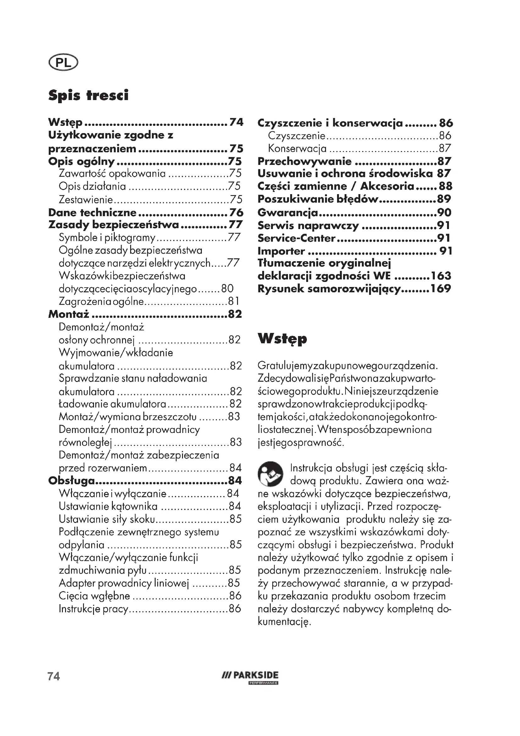 - Usuwanie i ochrona środowiska 87 Części zamienne / Akcesoria p. 88