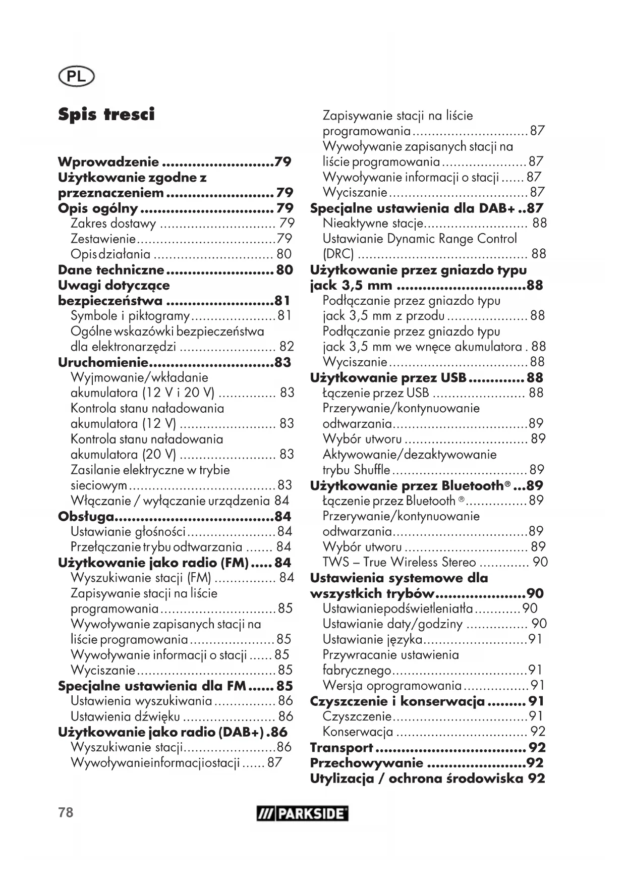 - Utylizacja / ochrona środowiska 92 Spis tresci Wprowadzenie p. 79