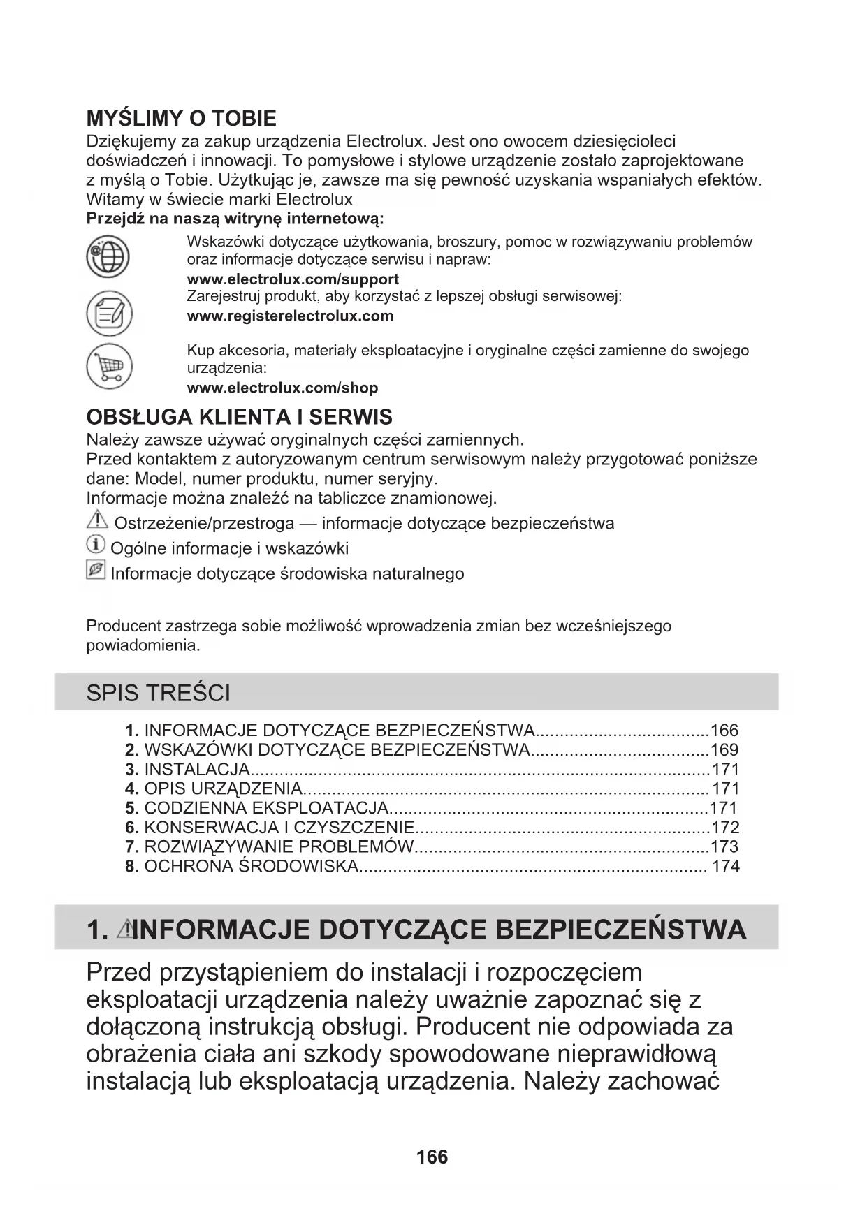 Dziękujemy za zakup urządzenia Electrolux. Jest ono owocem dziesięciolecidoświadczeń i innowacji. To pomysłowe i stylowe urządzenie zostało zaprojektowanez myślą o Tobie. Użytkując je, zawsze ma się pewność uzyskania wspaniałych efektów.Witamy w świecie marki ElectroluxPrzejdź na naszą witrynę internetową:Wskazówki dotyczące użytkowania, broszury, pomoc w rozwiązywaniu problemóworaz informacje dotyczące serwisu i napraw:www.electrolux.com/supportZarejestruj produkt, aby korzystać z lepszej obsługi serwisowej:www.registerelectrolux.comKup akcesoria, materiały eksploatacyjne i oryginalne części zamienne do swojegourządzenia:www.electrolux.com/shop
