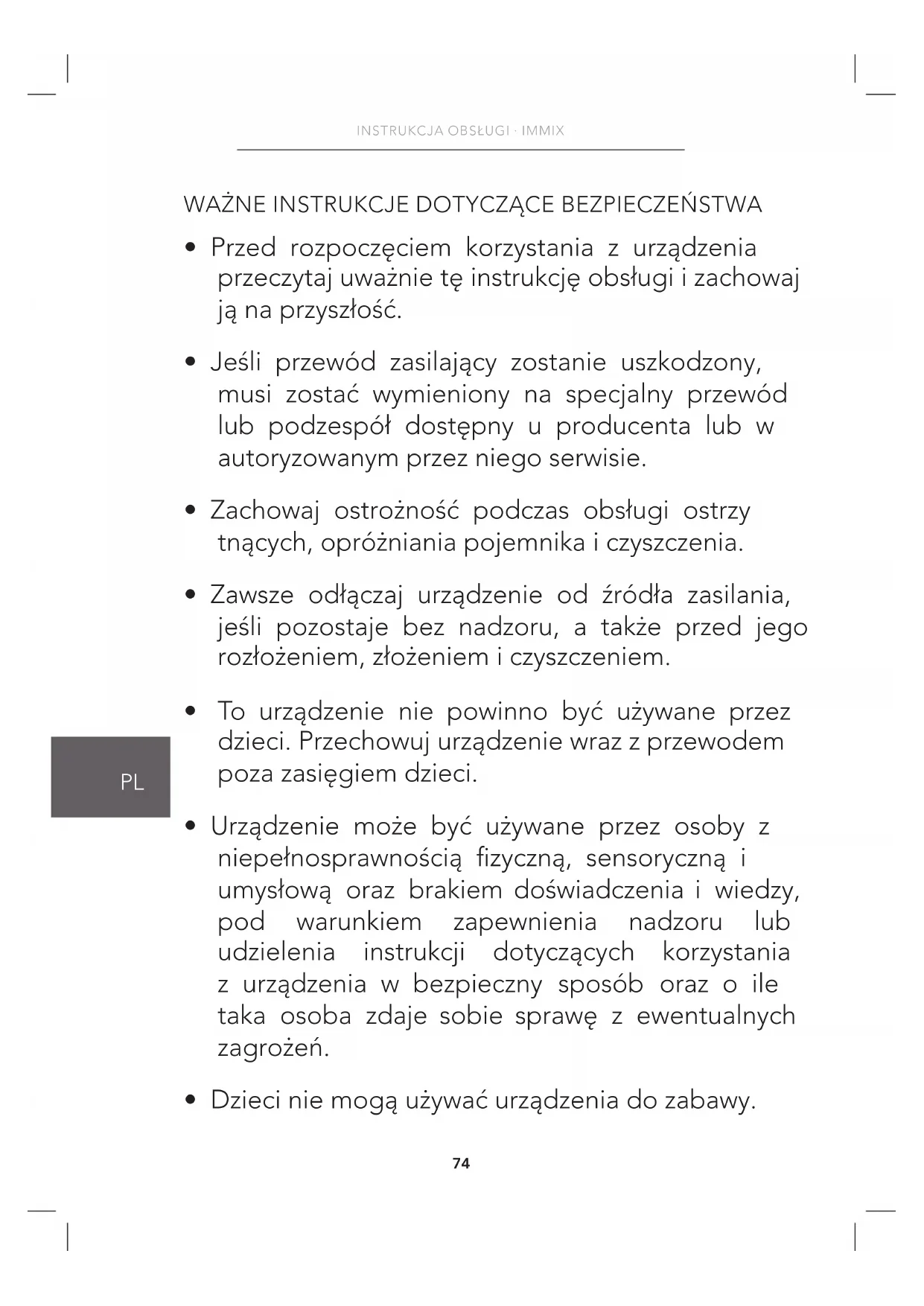 - Dzieci nie mogą używać urządzenia do zabawy.75