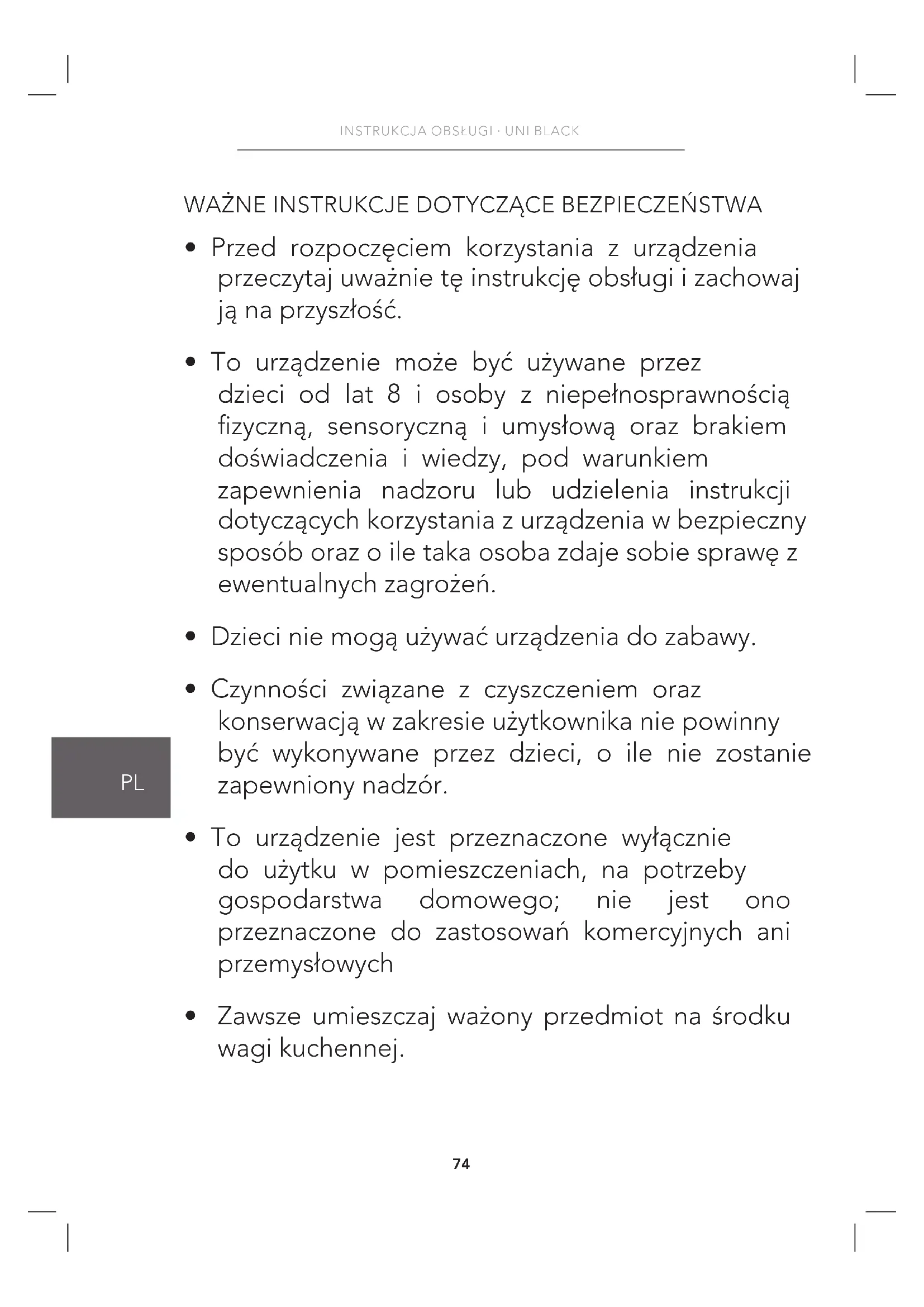 - Przechowuj wagę w chłodnym, suchym miejscu.76