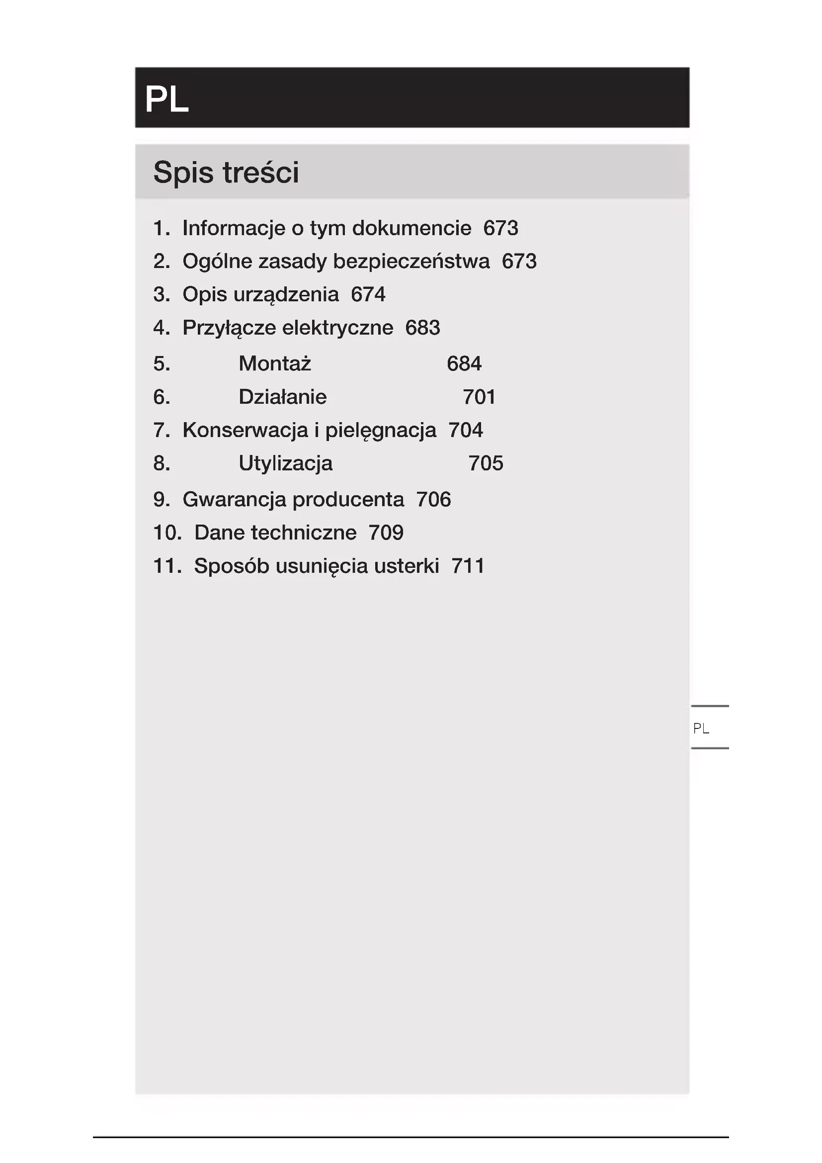 - Urządzenie czyścić za pomocą lekko zwilżonej szmatki bez detergentów. Ważne: Układ sterowania nie jest wymienny.– 672 – Spis treści