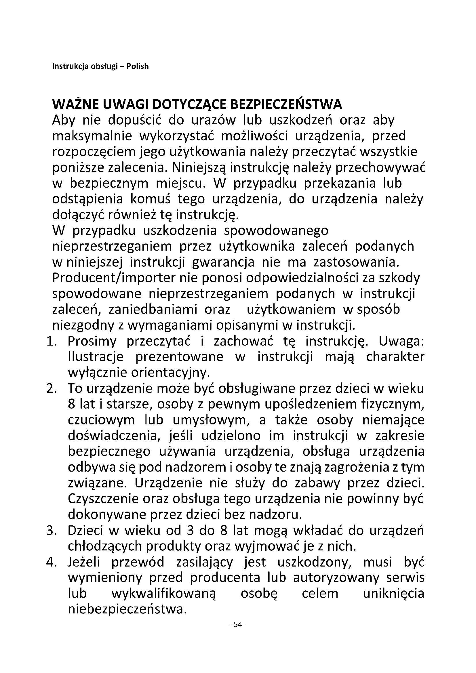4. Jeżeli przewód zasilający jest uszkodzony, musi być