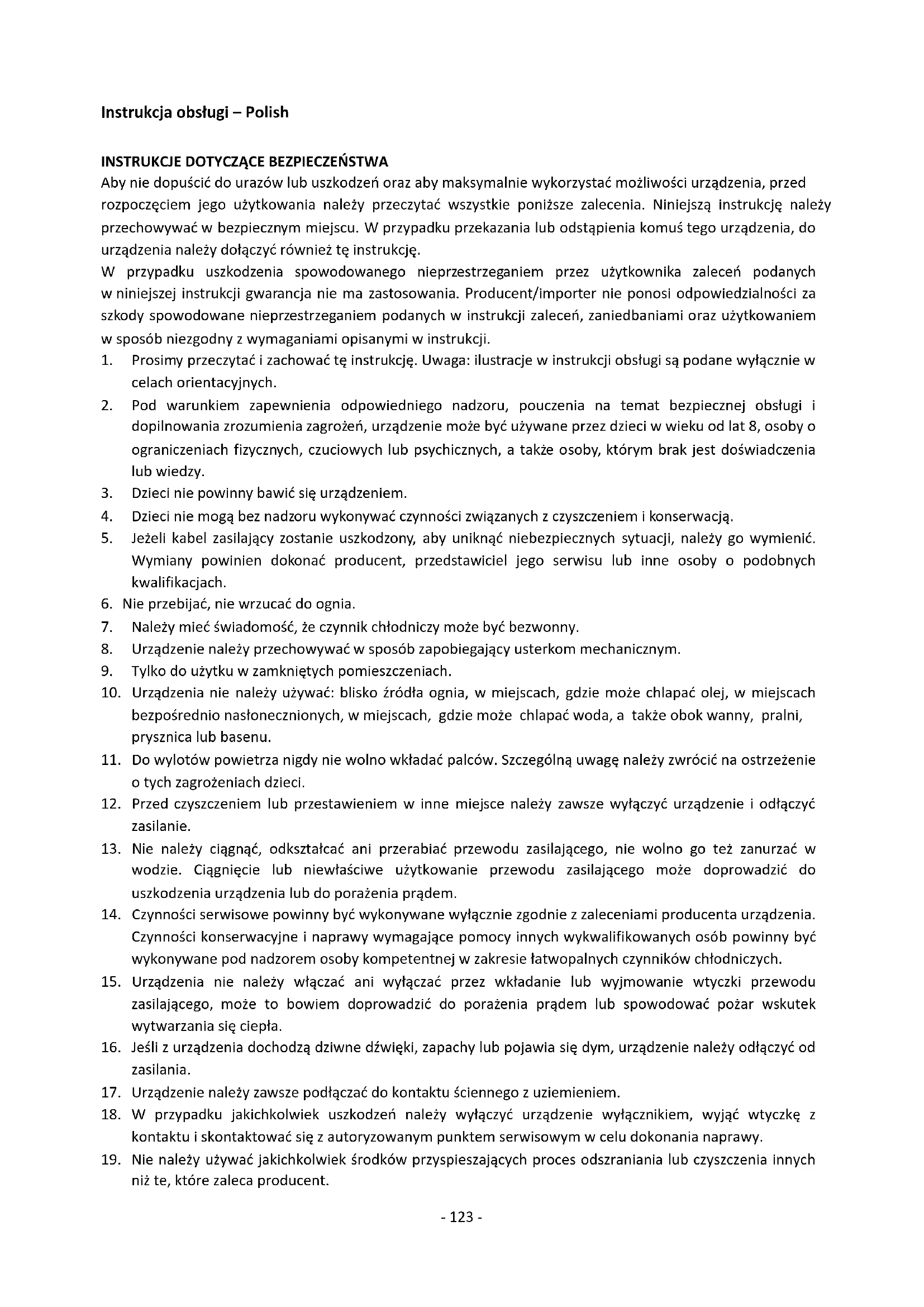 14. Czynności serwisowe powinny być wykonywane wyłącznie zgodnie z zaleceniami producenta urządzenia.
