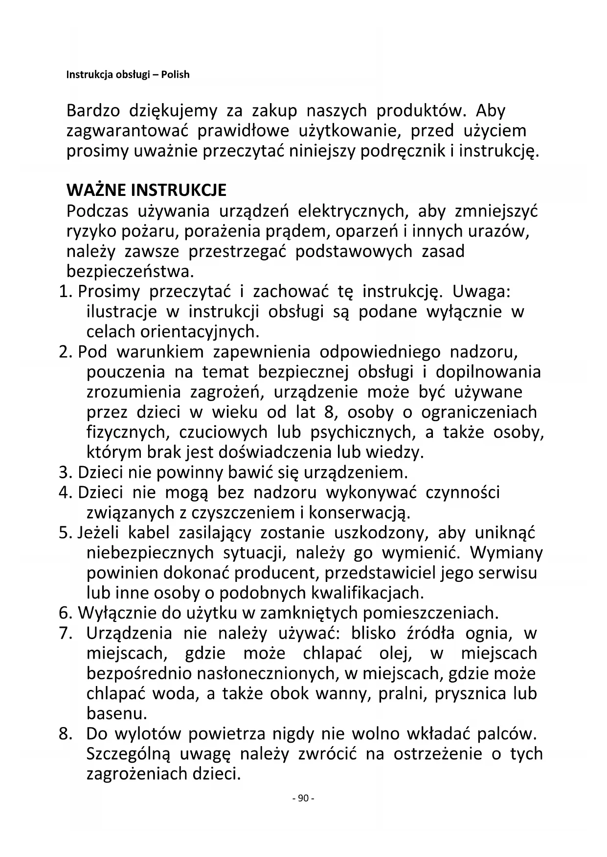 1. Prosimy przeczytać i zachować tę instrukcję. Uwaga: