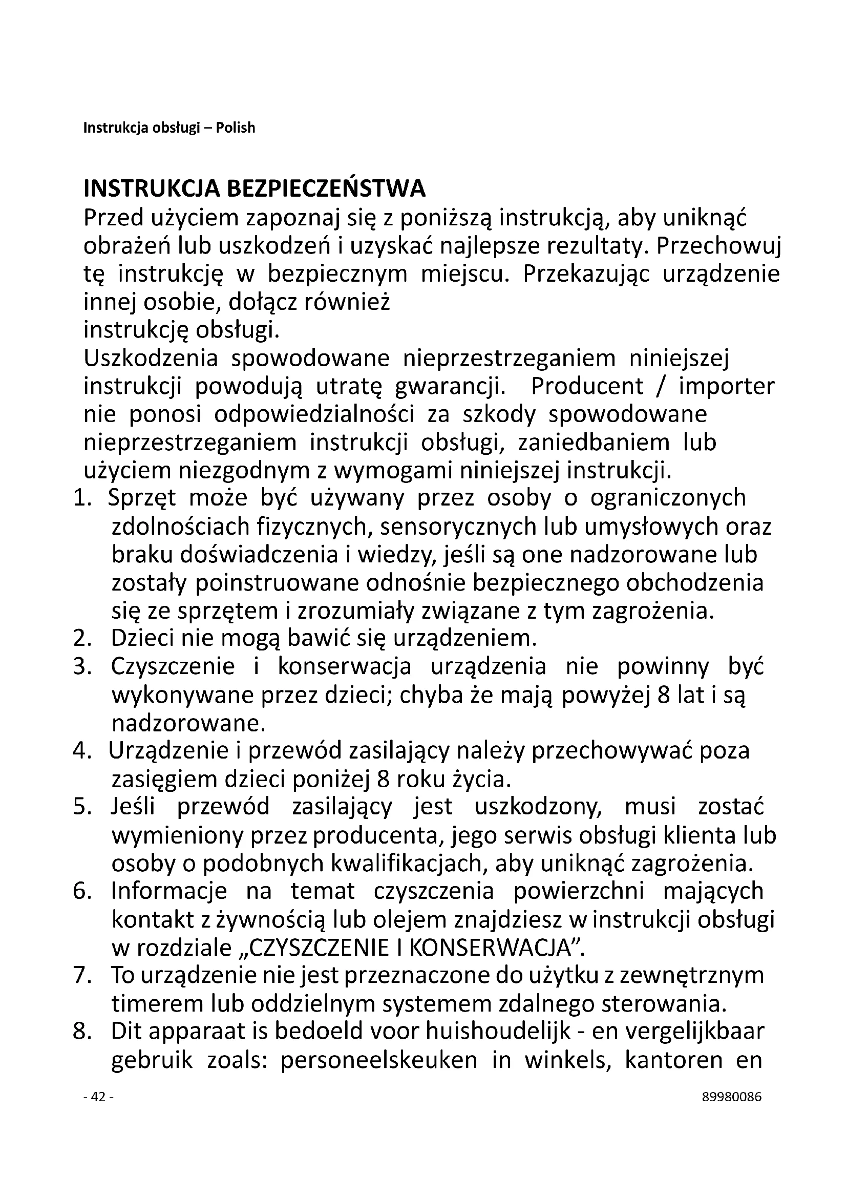 21. Korzystaj z urządzenia tylko zgodnie z jego przeznaczeniem.