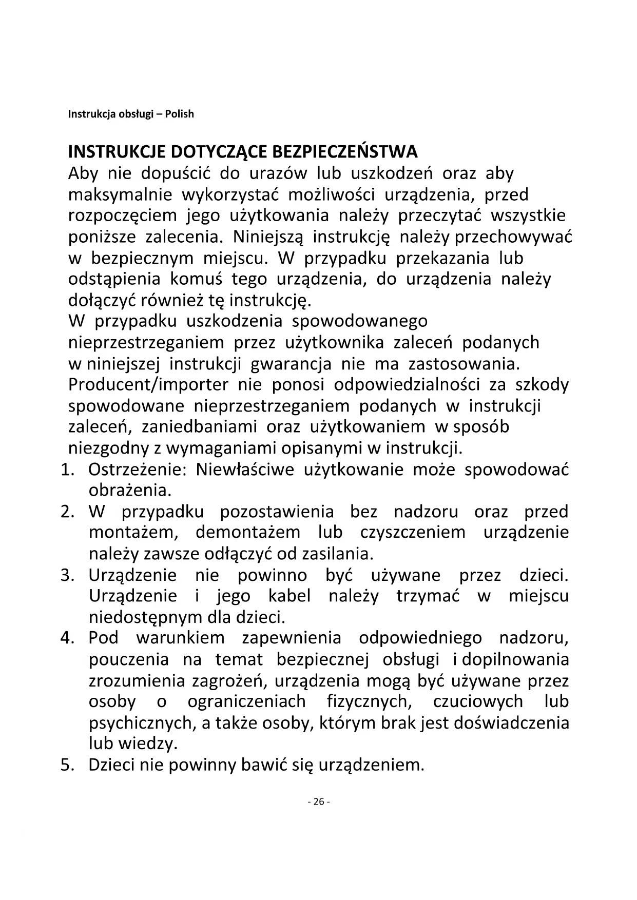 5. Dzieci nie powinny bawić się urządzeniem.- 27 -