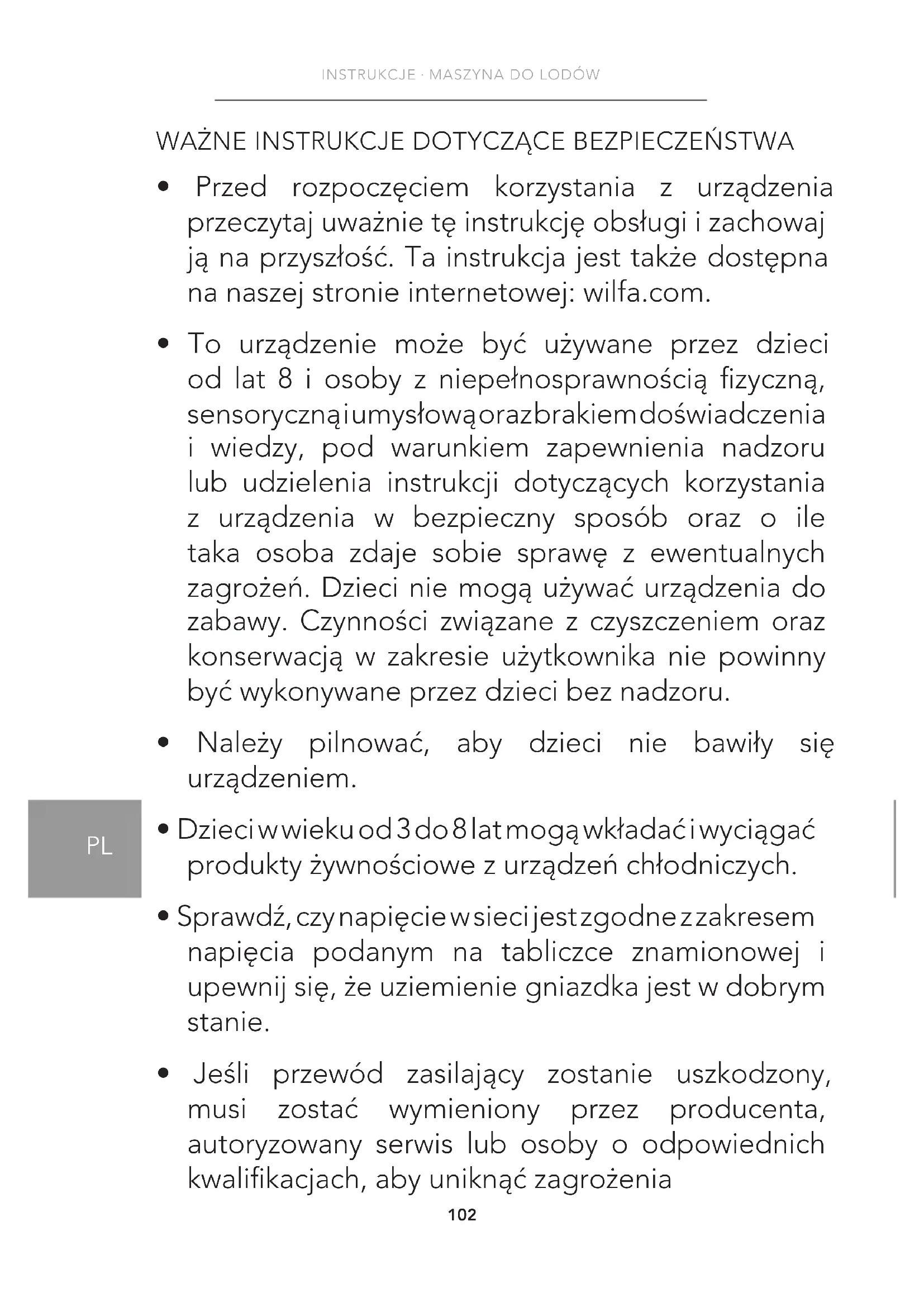 - Przed rozpoczęciem korzystania z urządzenia przeczytaj uważnie tę instrukcję obsługi i zachowaj ją na przyszłość. Ta instrukcja jest także dostępna na naszej stronie internetowej: wilfa.com.