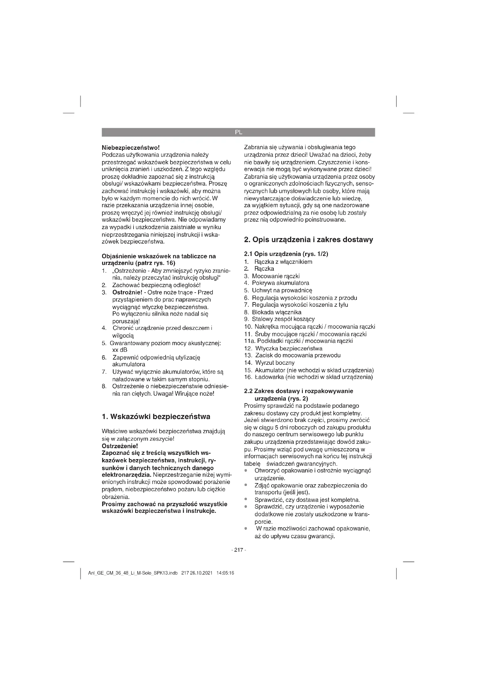 W razie możliwości zachować opakowanie, aż do upływu czasu gwarancji. Anl_GE_CM_36_48_Li_M-Solo_SPK13.indb 217 26.10.2021 14:05:16PL