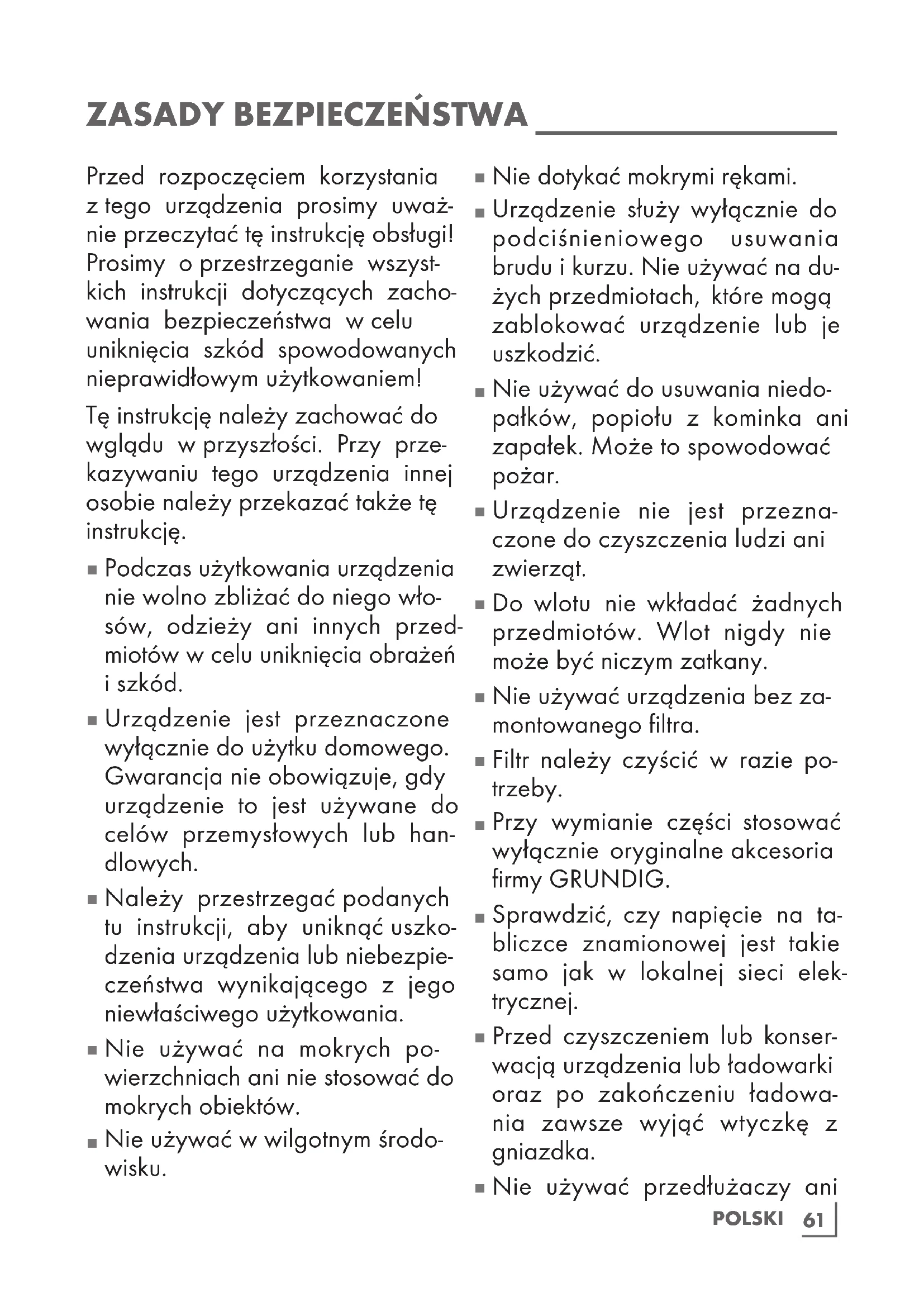 Urządzenie służy wyłącznie do podciśnieniowego usuwania brudu i kurzu. Nie używać na du- żych przedmiotach, które mogą zablokować urządzenie lub je uszkodzić.