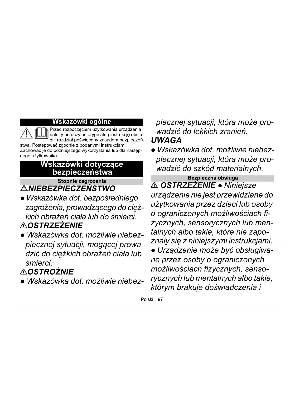 - Wskazówki dotyczące bezpieczeństwa p. 97