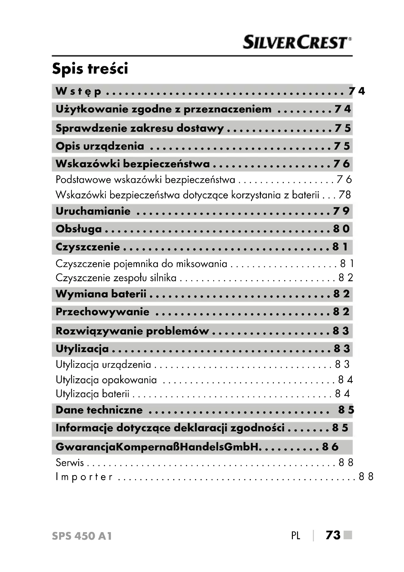 INSTRUKCJA OBSŁUGI SPS 450 A1 SILVERCREST