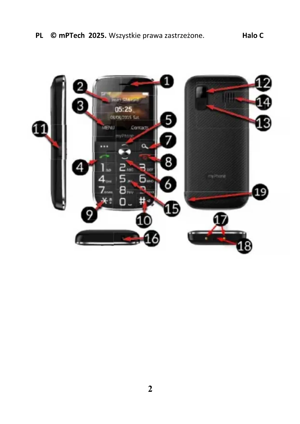 Szczegółowy Regulamin Rozpatrywania Reklamacji, Procedura Reklamacji, Protokół Reklamacyjny oraz Lista Punktów nadawczych dostępne są na stronie internetowej: http://www.myphone.pl/gwarancjaPL © mPTech 2025. Wszystkie prawa zastrzeżone. Halo C