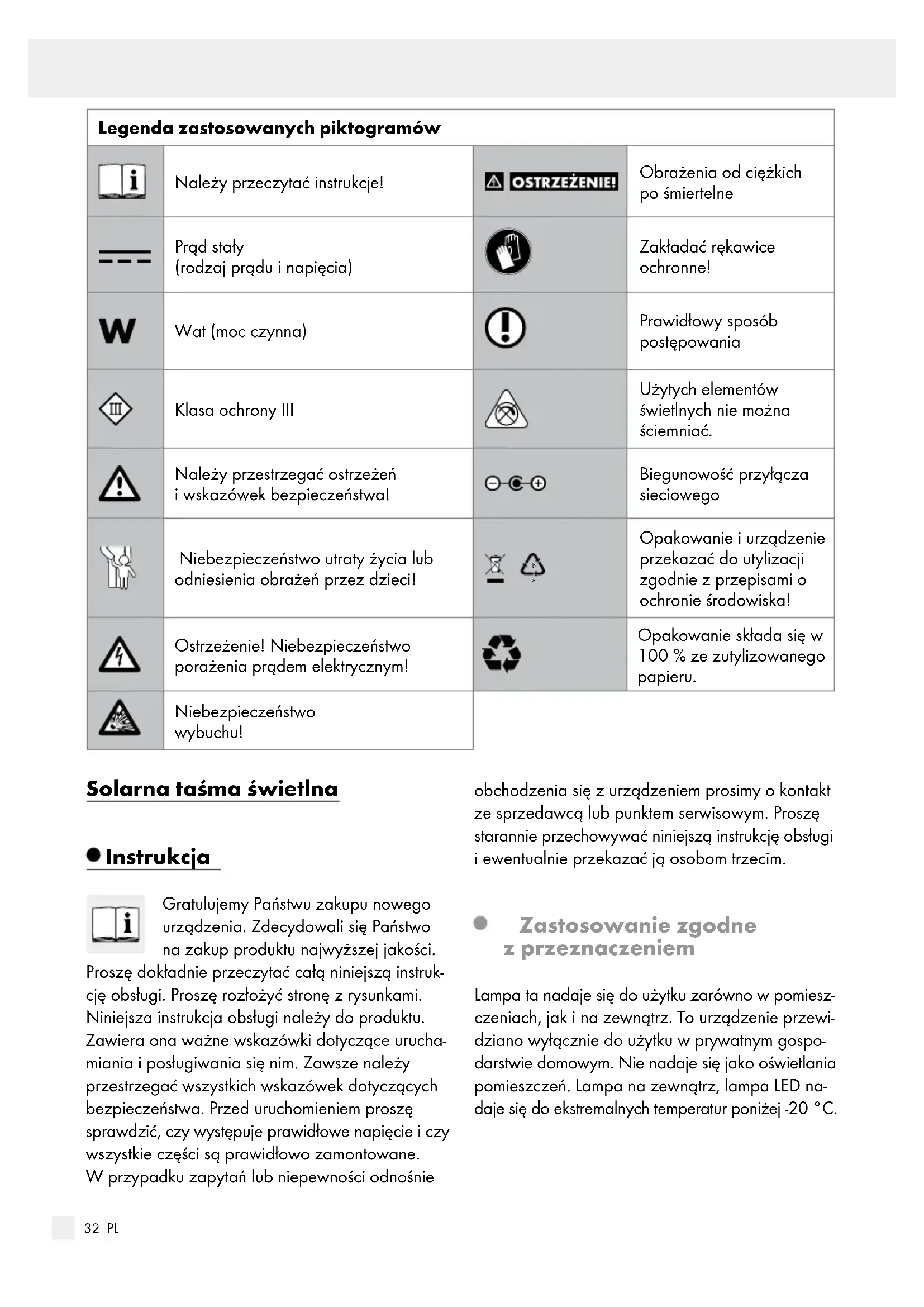 Zastosowanie zgodne z przyeznaczeniem Strona 32