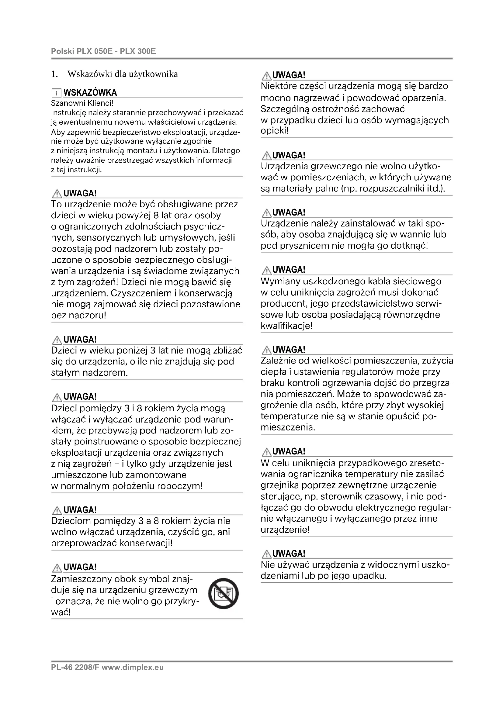 INSTRUKCJA OBSŁUGI PLX075E DIMPLEX