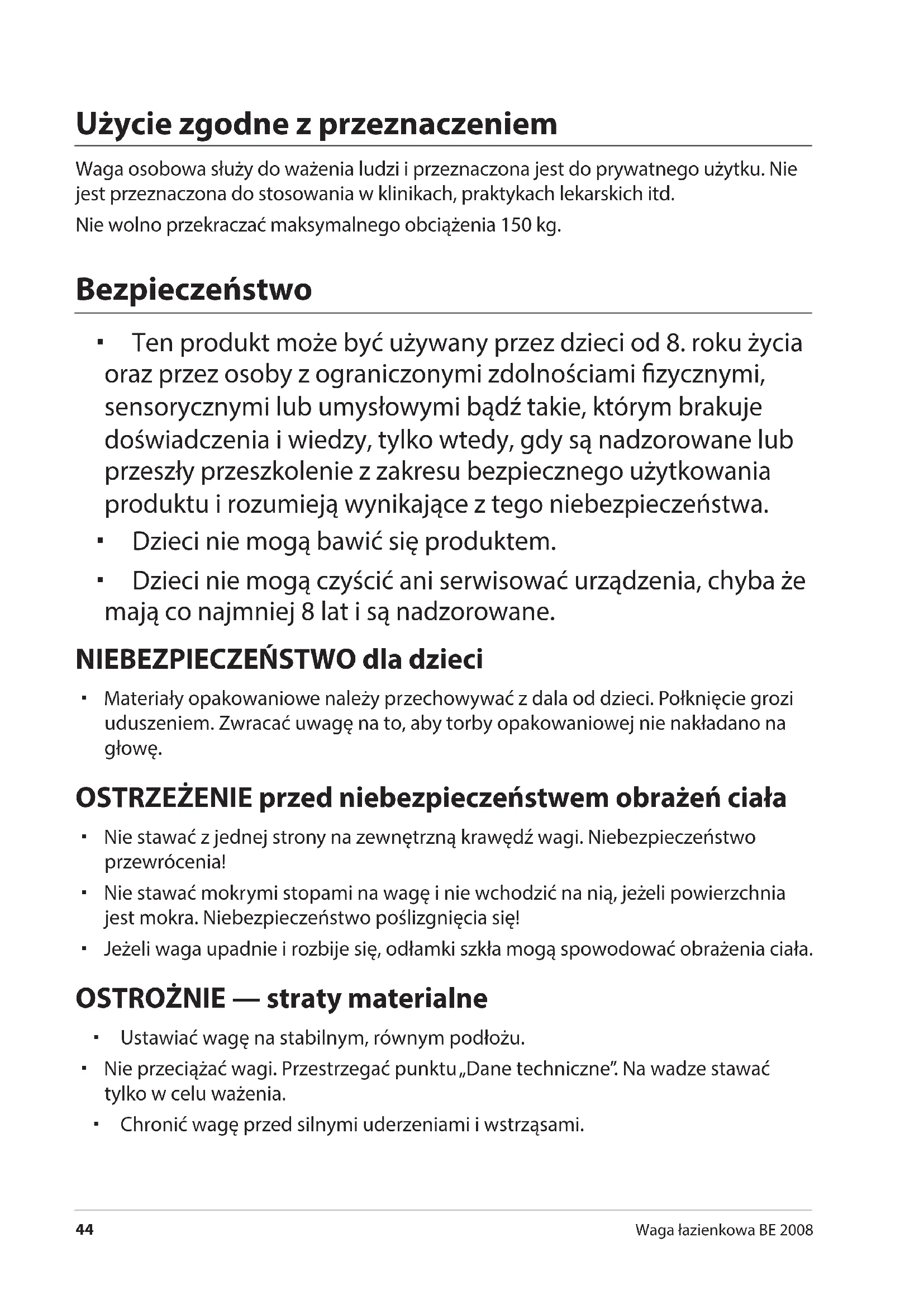 - Nie stawać z jedernej strony na zewnętrzną krawędź wagi. Niebezpieczeniawo przyzewrócenia!
