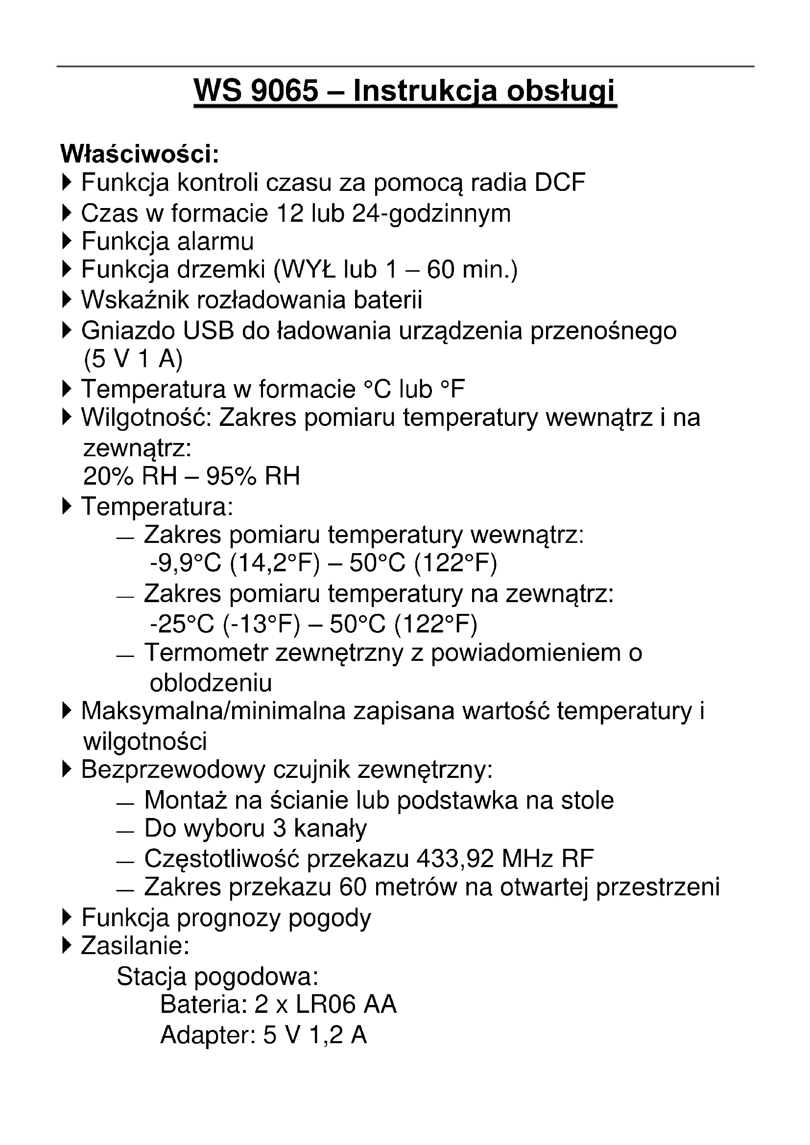 INSTRUKCJA OBSŁUGI WS 9065 TECHNOLINE