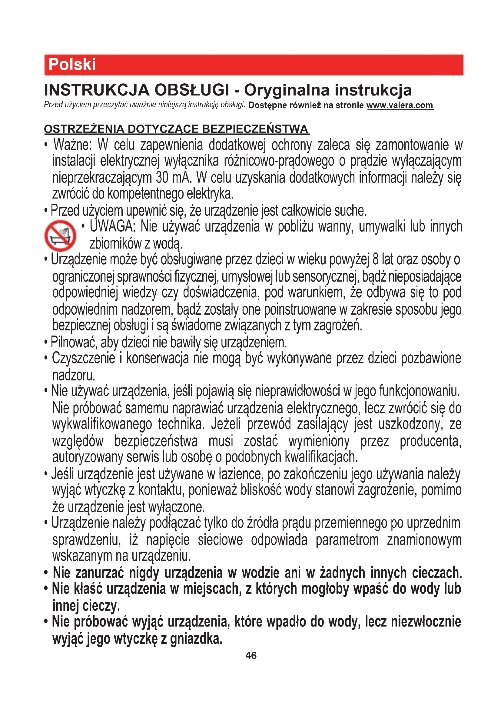 un service neautorizat. 00060819 2021_09_Layout 1 24/09/2021 15:01 Pagina 4546 INSTRUKCJA OBSŁUGI - Oryginalna instrukcja Przed użyciem przeczytać uważnie niniejszą instrukcję obsługi. Dostępne również na stronie www.valera.com