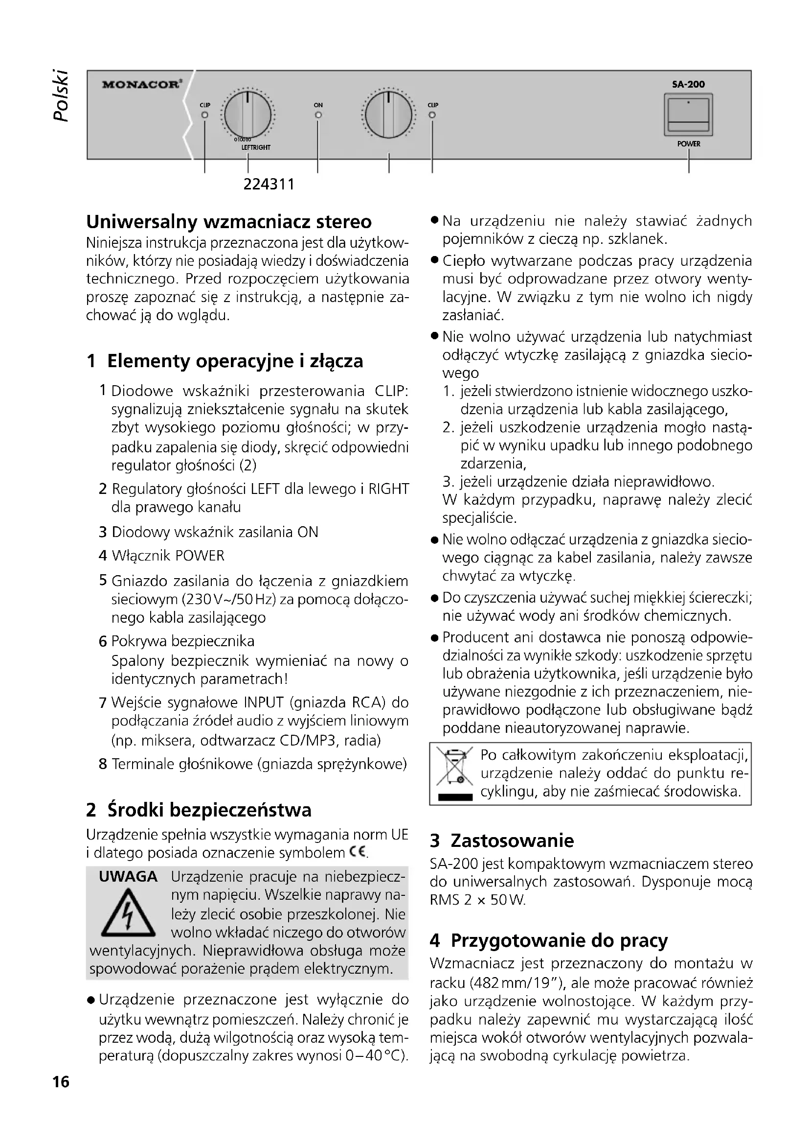INSTRUKCJA OBSŁUGI SA200 Monacor
