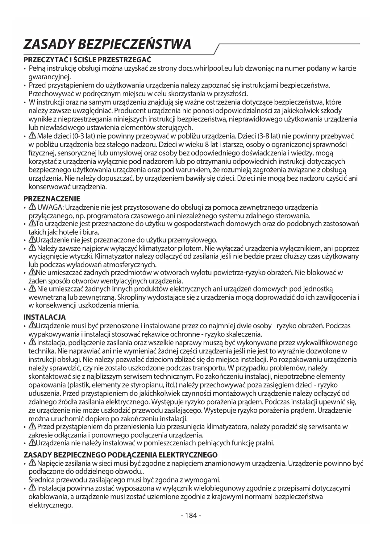 - Pełną instrukcję obsługi można uzyskać ze strony docs.whirlpool.eu lub dzwoniąc na numer podany w karcie gwarancyjnej.