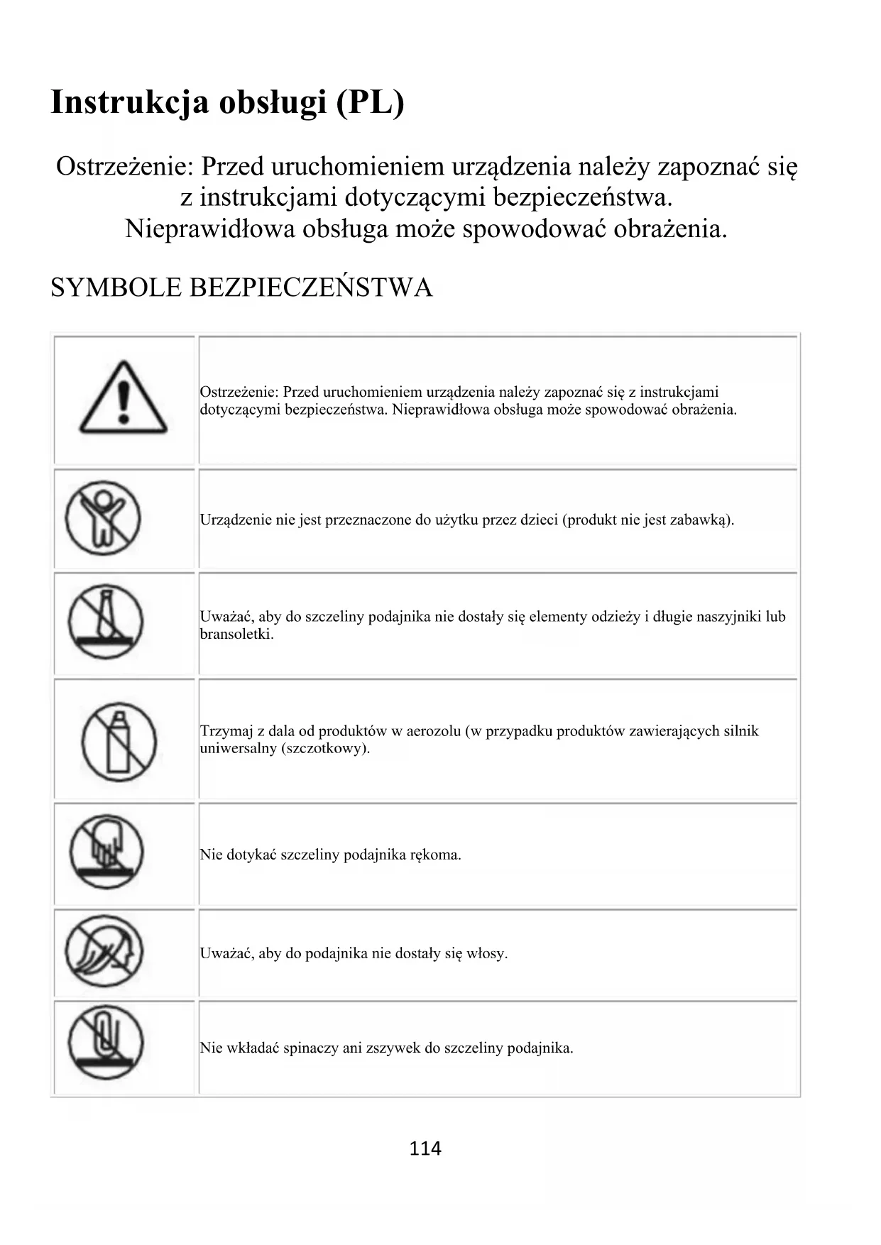Uważać, aby do szczeliny podajnika nie dostały się elementy odzieży i długie naszyjniki lub bransoletki.