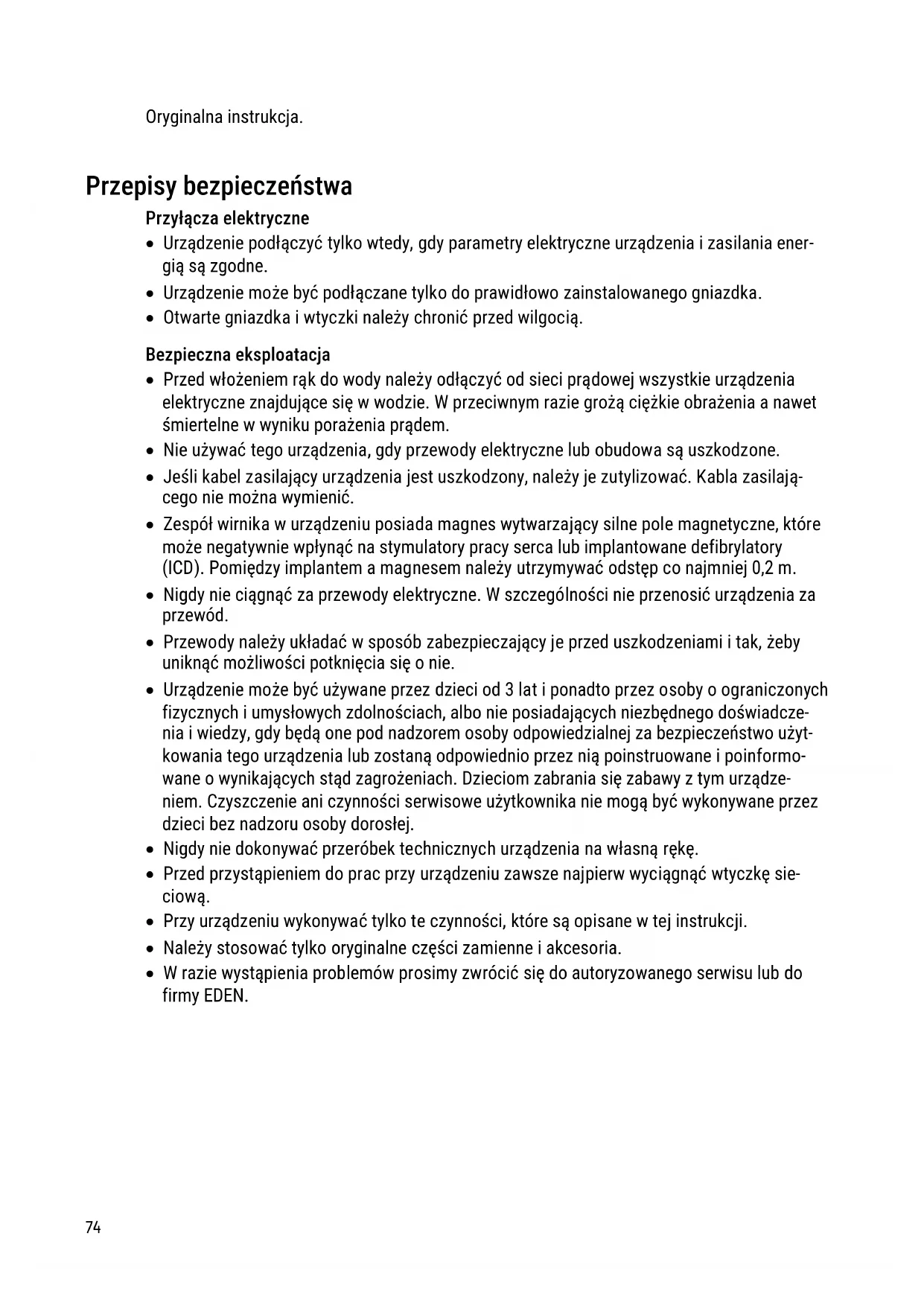 - W razie wystąpienia problemów prosimy zwrócić się do autoryzowanego serwisu lub do firmy EDEN.DE