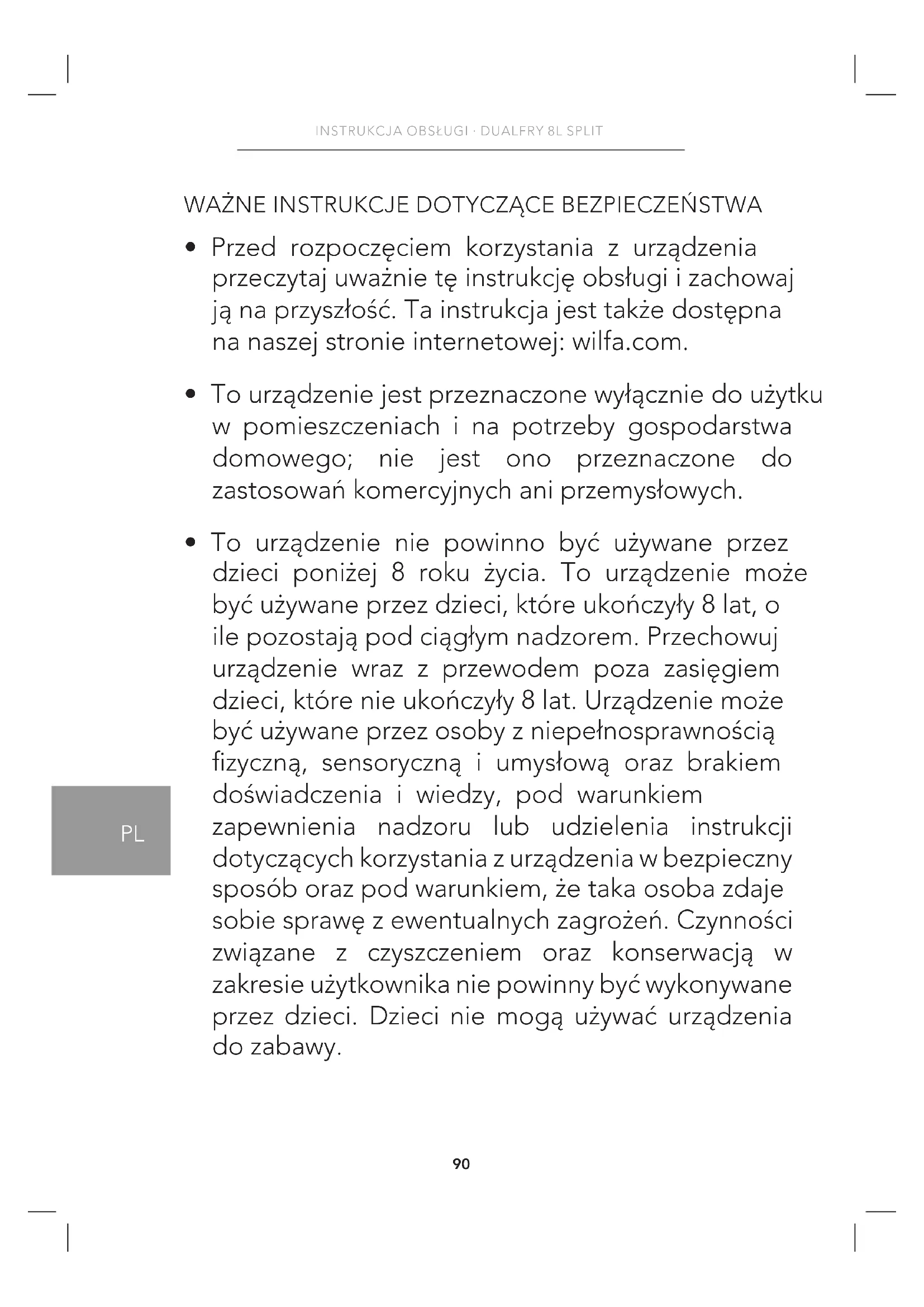 - Przed rozpoczęciem korzystania z urządzenia przeczytaj uważnie tę instrukcję obsługi i zachowaj ją na przyszłość. Ta instrukcja jest także dostępna na naszej stronie internetowej: wilfa.com.