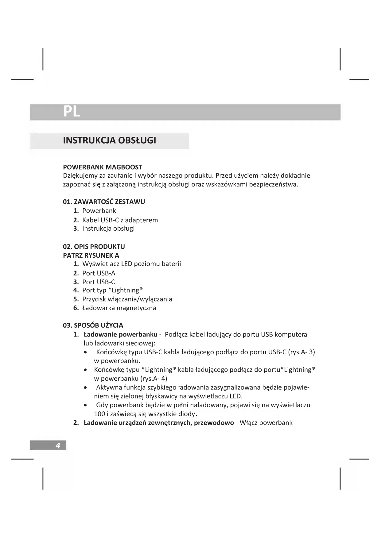 POWERBANK MAGBOOST Dziękujemy za zaufanie i wybór naszego produktu. Przed użyciem należy dokładnie zapoznać się z załączoną instrukcją obsługi oraz wskazówkami bezpieczeństwa.
