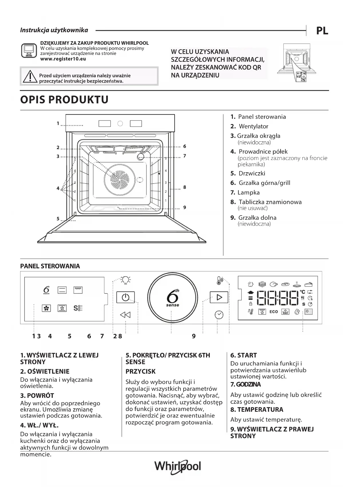 WOI4IS8PM0SXA1 - Piekarnik WHIRLPOOL - Bezpłatna instrukcja obsługi