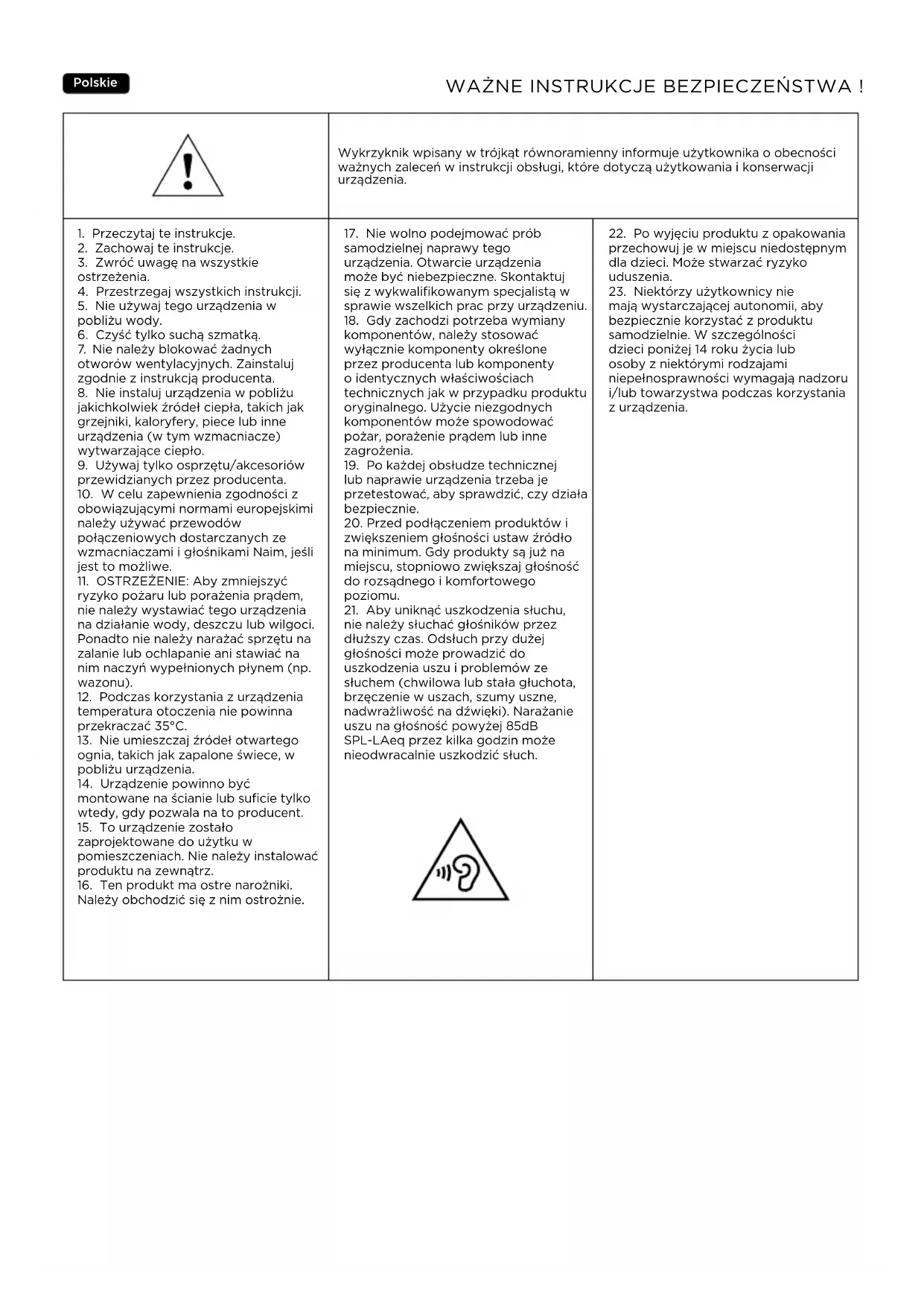 zwiększeniem głośności ustaw źródło na minimum. Gdy produkty są już na miejscu, stopniowo zwiększaj głośność do rozsądnego i komfortowego poziomu.