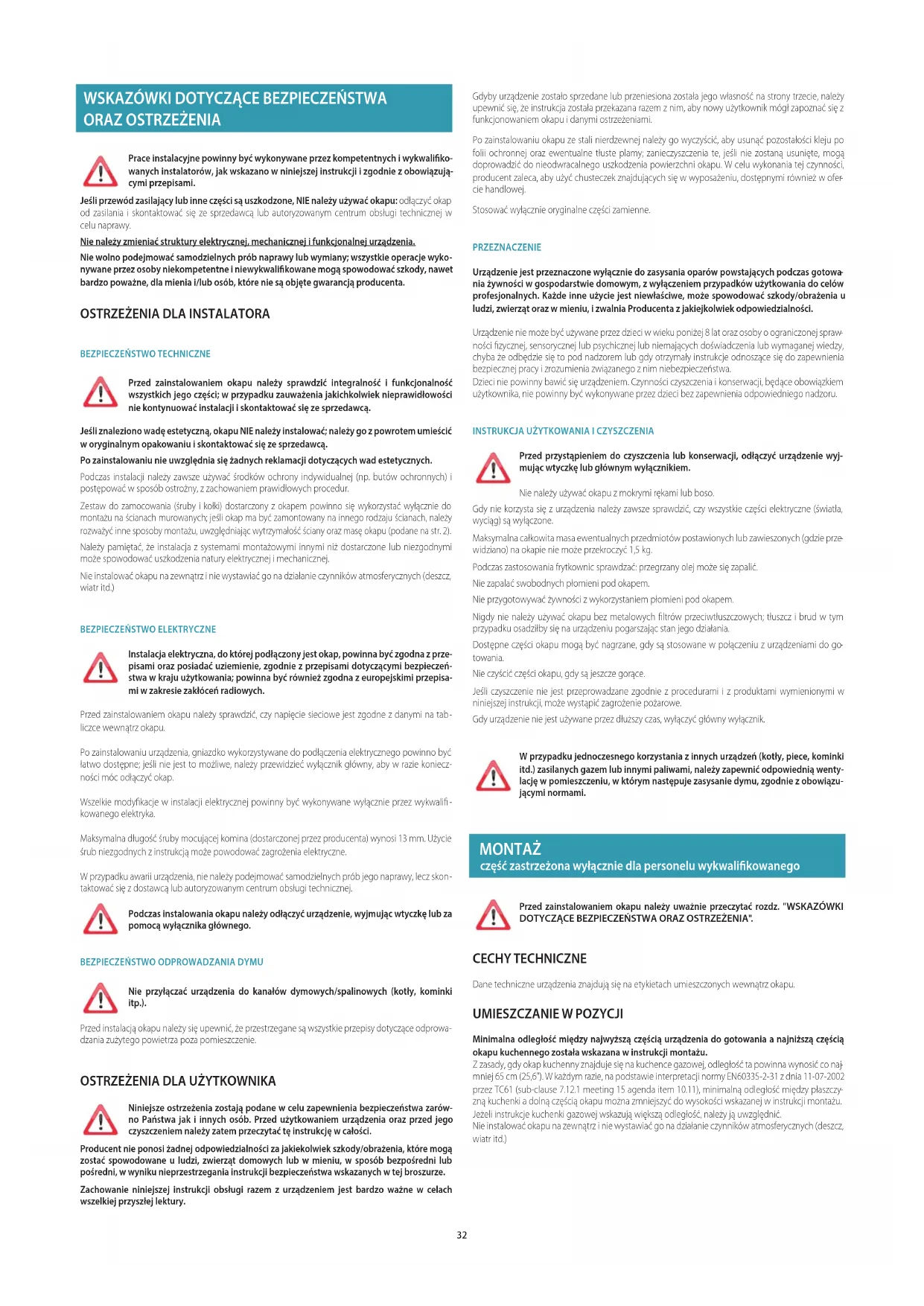 OSTRZEŻENIA DLA INSTALATORA