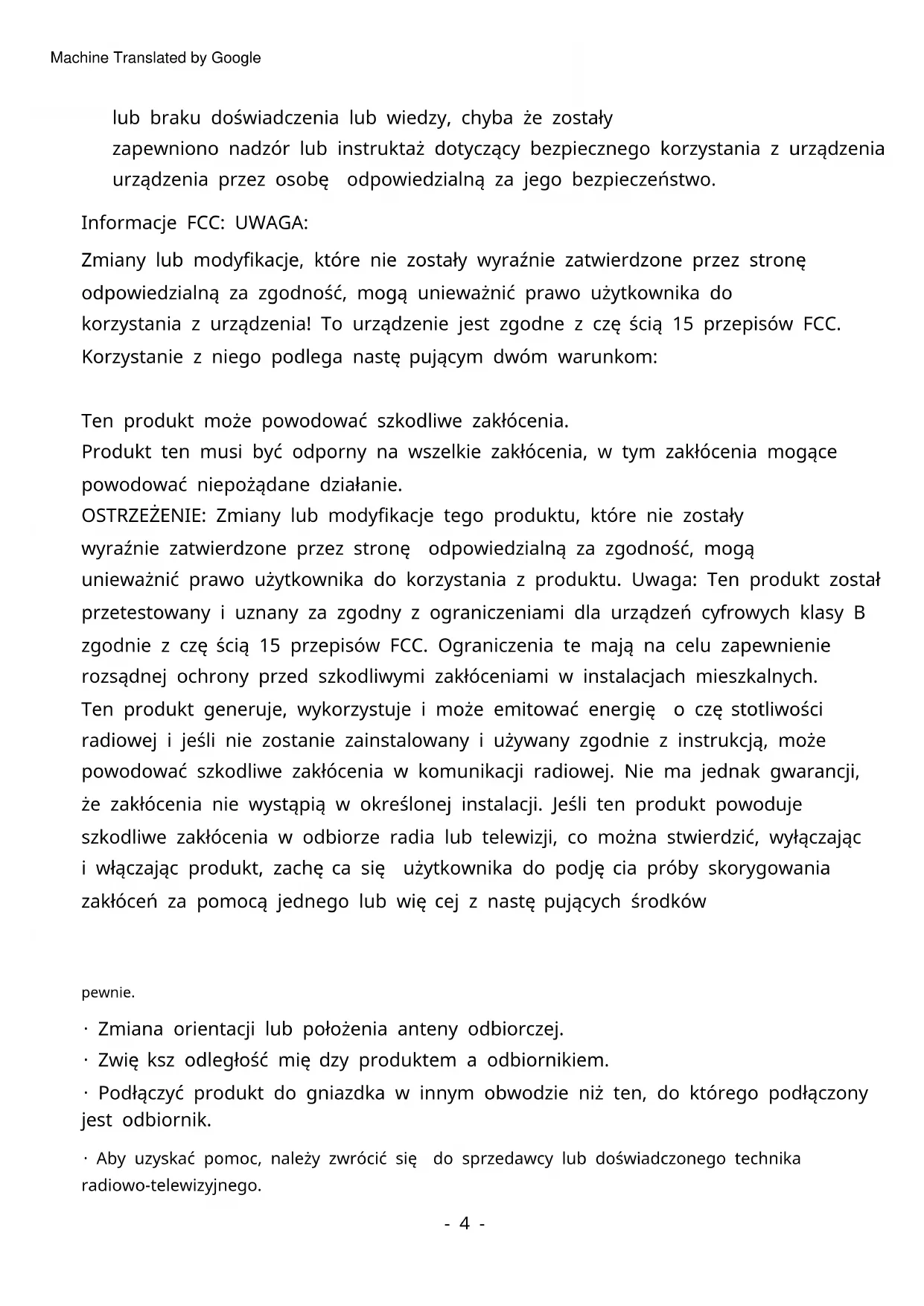 - Aby uzyskać pomoc, należy zwrócić się do sprzedawcy lub doświadczonego technika radiowo-telewizyjnego.